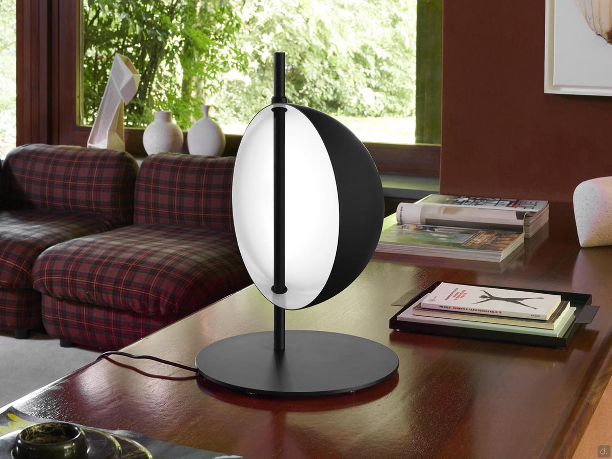 Superluna by Oluce is an adjustable table lamp with integrated LED. The lamp is the result of a design by Victor Vasilev and his reflection on the work of Vico Magistretti on the use of iconic shapes to enhance the potential of the light source. Vasilev proposes a lamp, also available as a floor lamp, which originates from the desire to make a technical light magical. The complement is thus revisited starting from the size of the LED integrated in the metal rod, itself guardian of the light source. The shade in the shape of a hemispherical cap reflects the light by rotating on its own axis, evocatively recalling the perpetual movement of celestial bodies and enhancing the small luminous heart contained in the structure of the lamp.