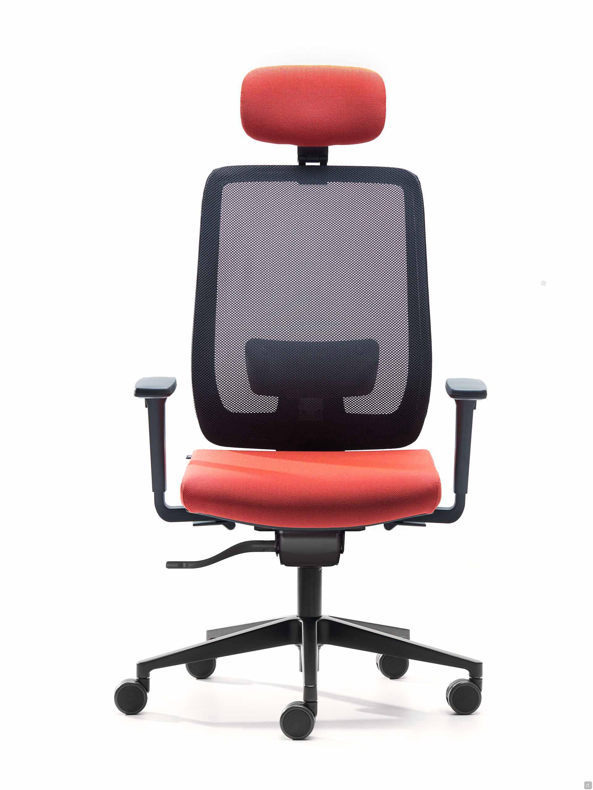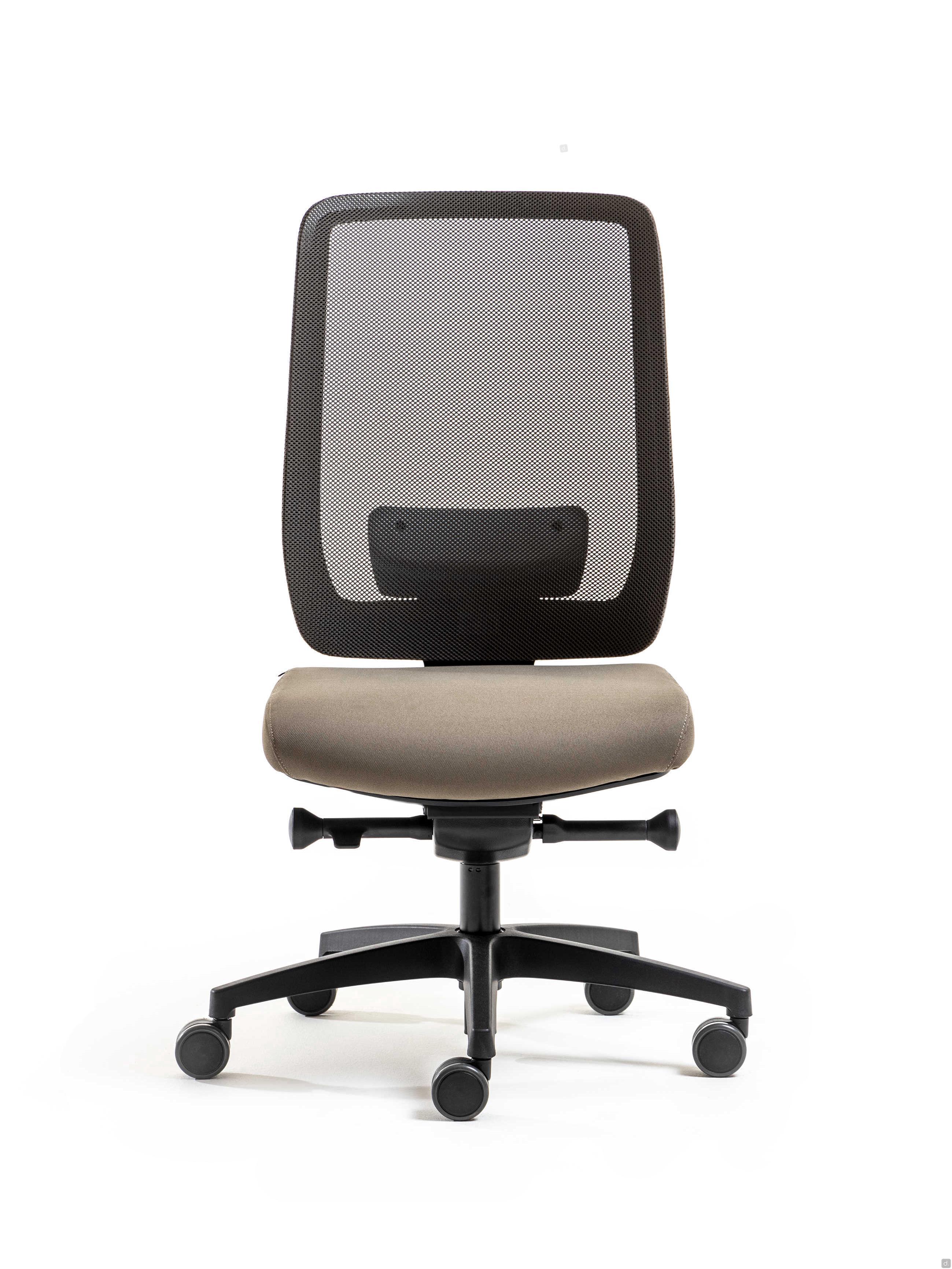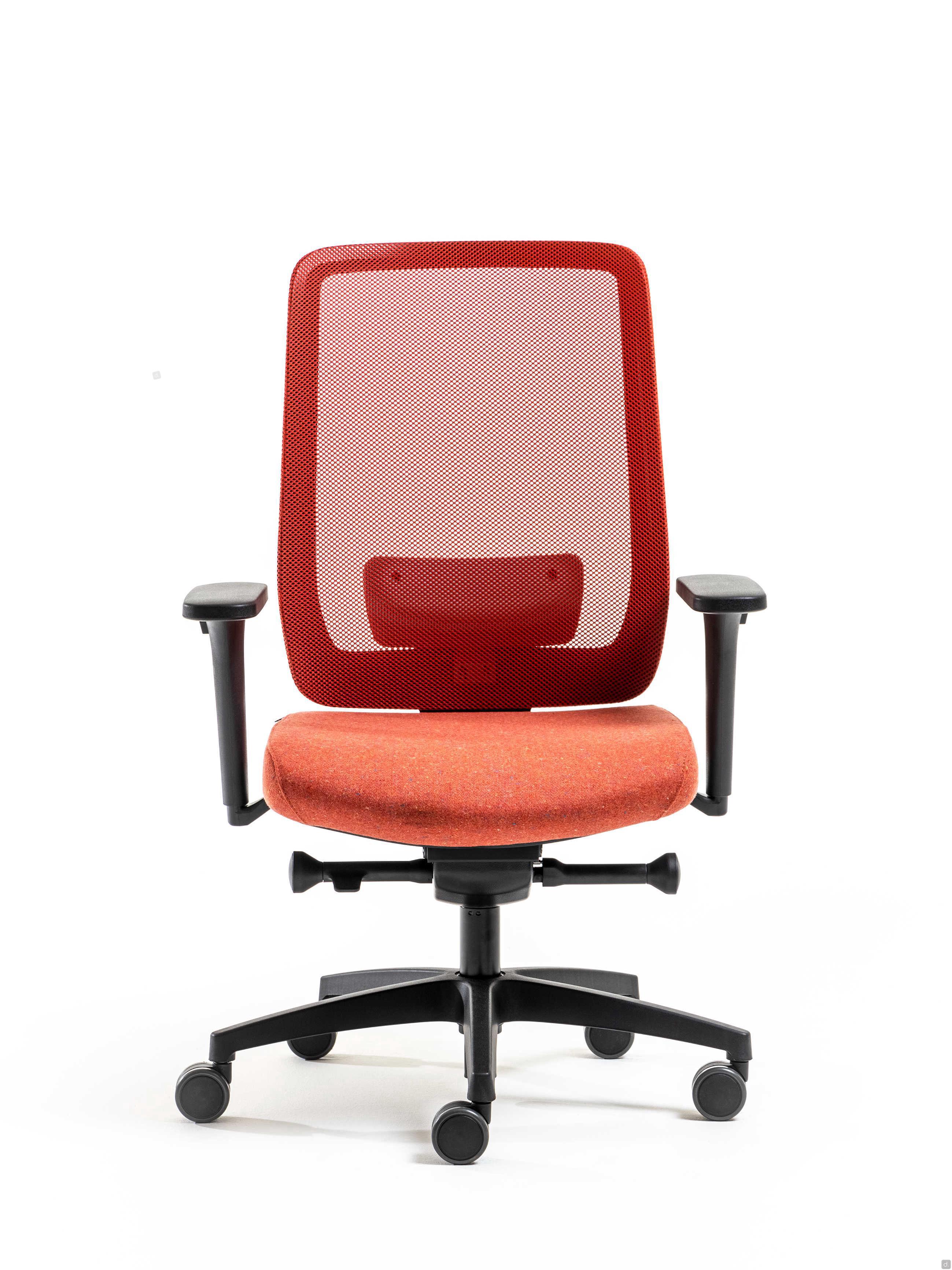 Elon is a computer chair with mesh backrest, available with or without armrests, the backrest is breathable and available in white, grey or black with adjustable lumbar support in soft polyurethane. Elon has a swivel base and is adjustable in height, furthermore the seat depth can be moved and thanks to the synchronous mechanism it is possible to move seat and back together. The seat is upholstered and covered and is available in many colours, either in fabric or faux leather.