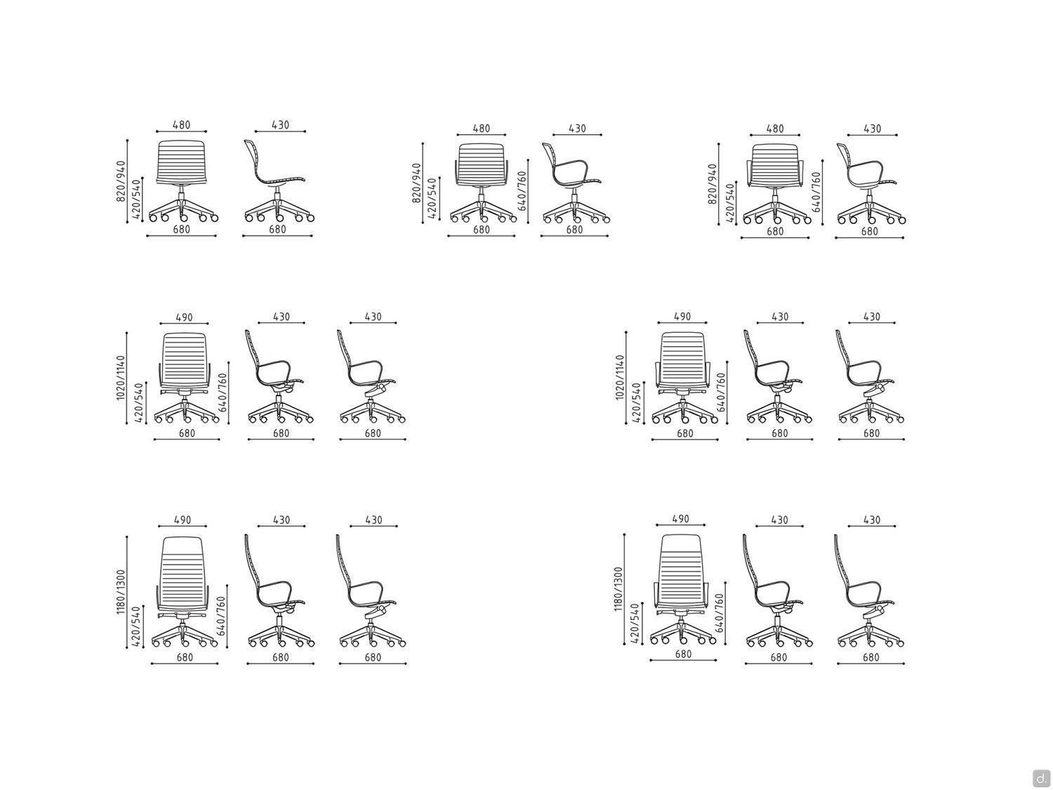 Mark is available as a task chair with low backrest, swivel and adjustable in height, with or without armrests and perfect for a home office or a kids bedroom and in an executive version with either medium or high backrest. All executive versions are swivel, adjustable in height, reciling and with a central or advanced tilting mechanism.