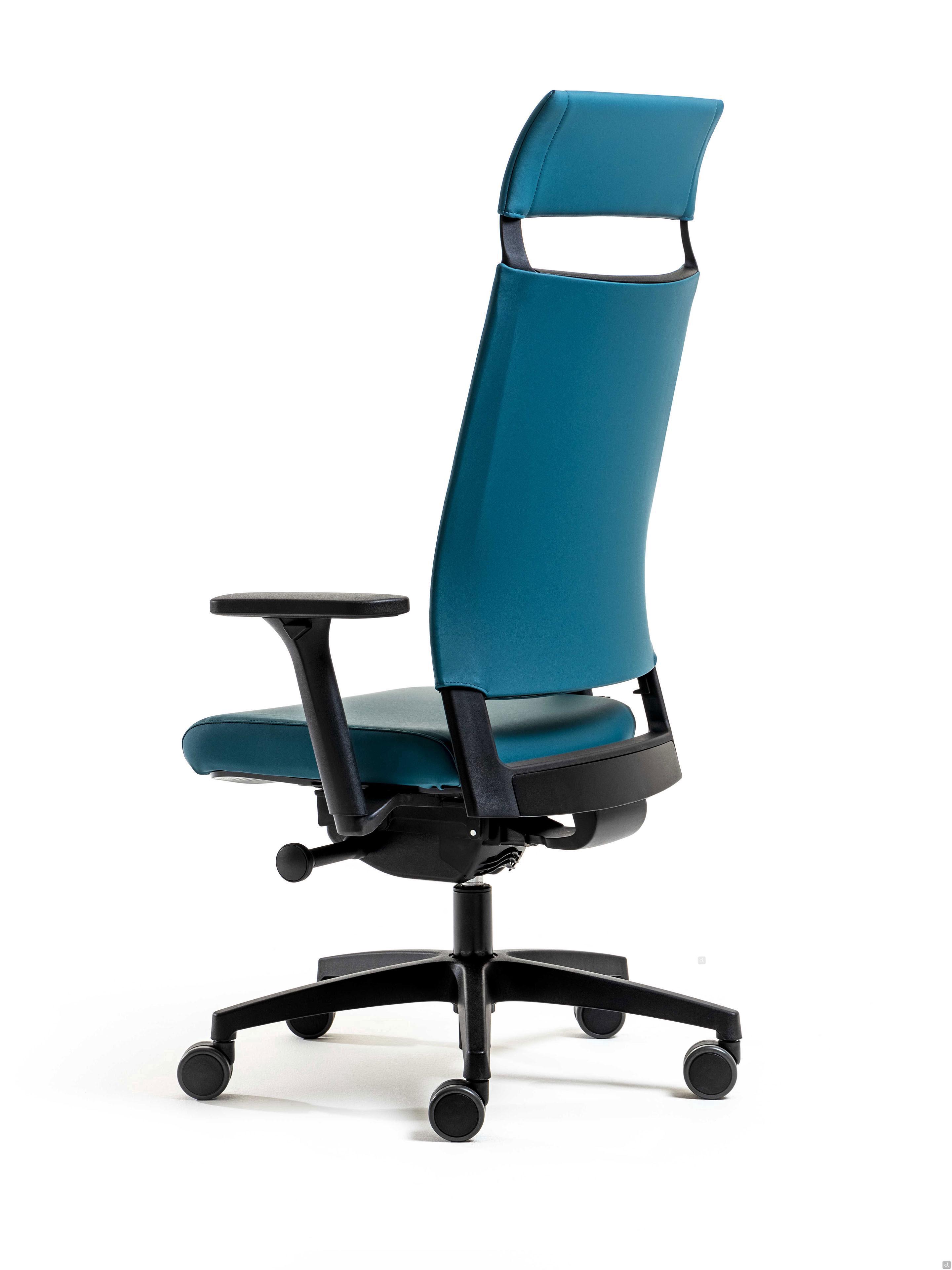 Expo Light is an executive chair with a breathable mesh or padded backrest , enhanced by the comfortable upholstered seat and flexible polypropylene headrest, which can be upholstered to match the seat.The added value of Expo Light is undoubtedly the ergonomic polyurethane lumbar support, positioned inside the breathable mesh and easily adjustable in height by hand. Furthermore, the seat is also available in the operative model, with or without armrests.