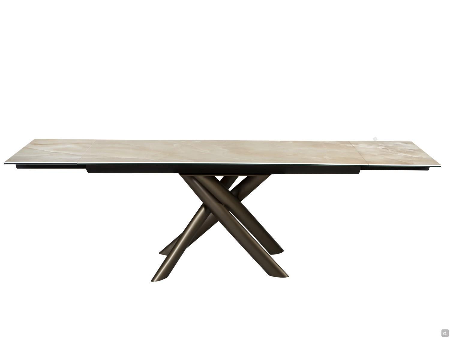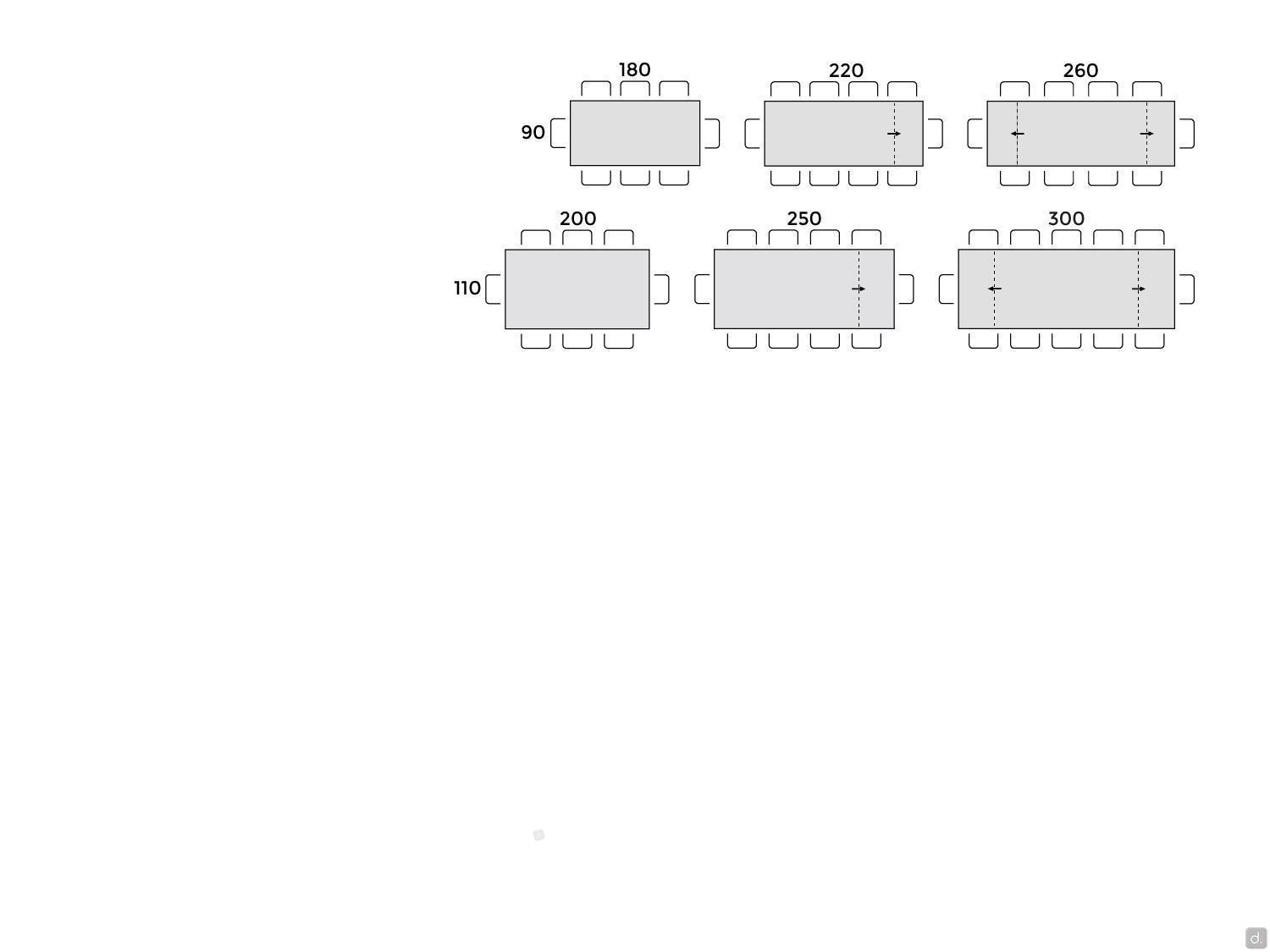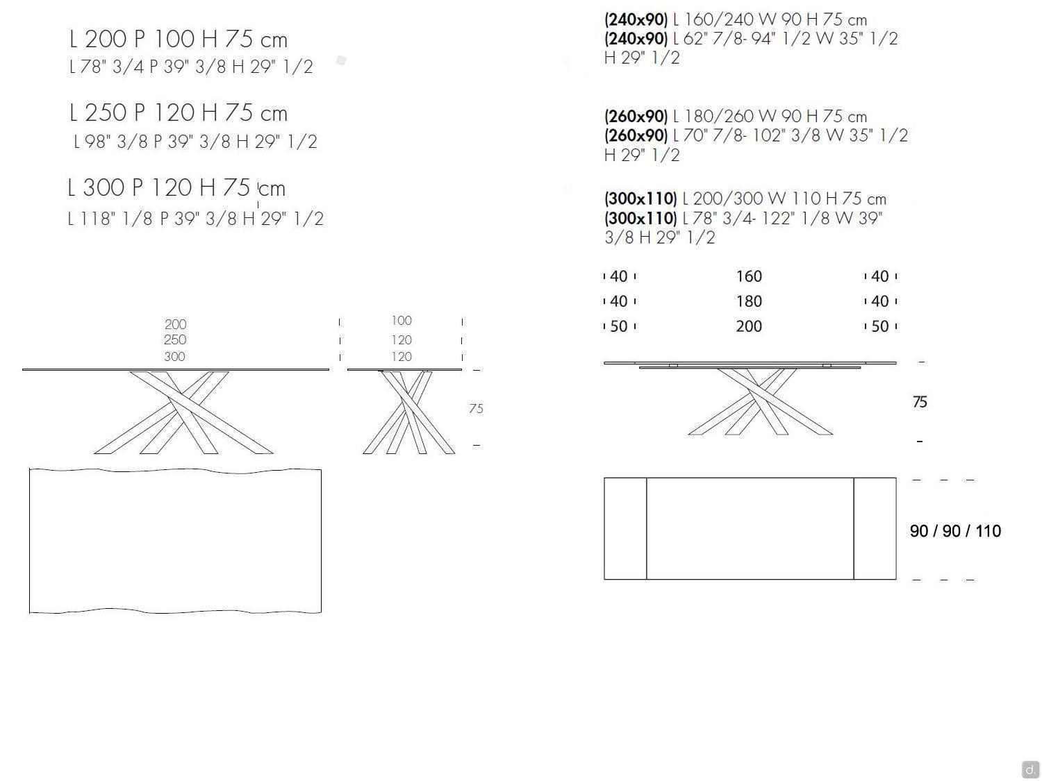 Top: the glass tops are 12 mm thick (excluding the "glass V100B extra-clear bevelled", the V02M or the V34M finishes, which are 15 mm thick). The Gres stone tops are 16 mm thick (excluding the cm 300x120 models which are 18 mm). The wood tops are 30 mm thick (excluding the tops with raised edges which are 40 mm). Marble tops are 20 mm thick.