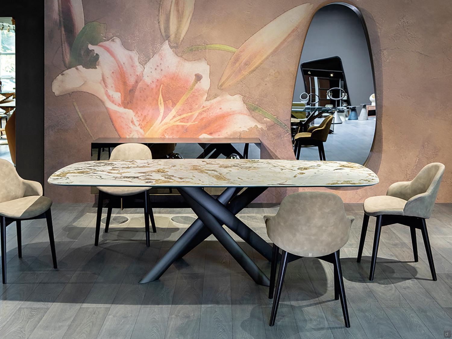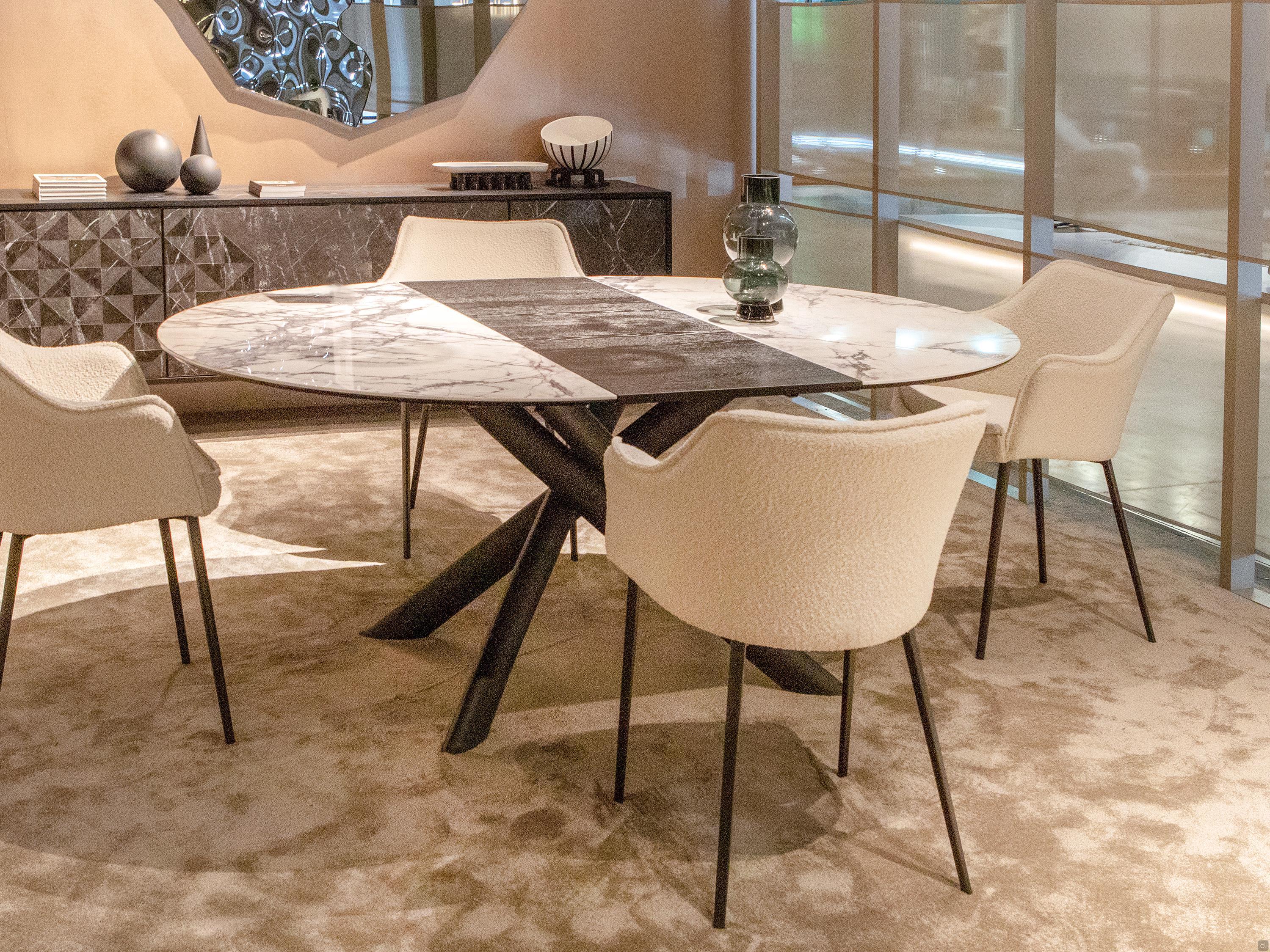 Marble: elegant and refined stone marble, characterised by open veins that sometimes may present some resin based speckles that create a uniform and smooth surface so that the top comes with no irregularities, granting additional structural resistance. Because it is a natural stone that is sometimes more than a million years old, the surface cannot be defined as 'perfect'; each piece is different from the next, depending on the cutting and polishing process. It may have natural micro imperfections, a characteristic of marble and not due to defects. Marble tops are naturally porous: any protective polyester treatment hides this porosity to the touch, leaving all the natural features of the stone visible.