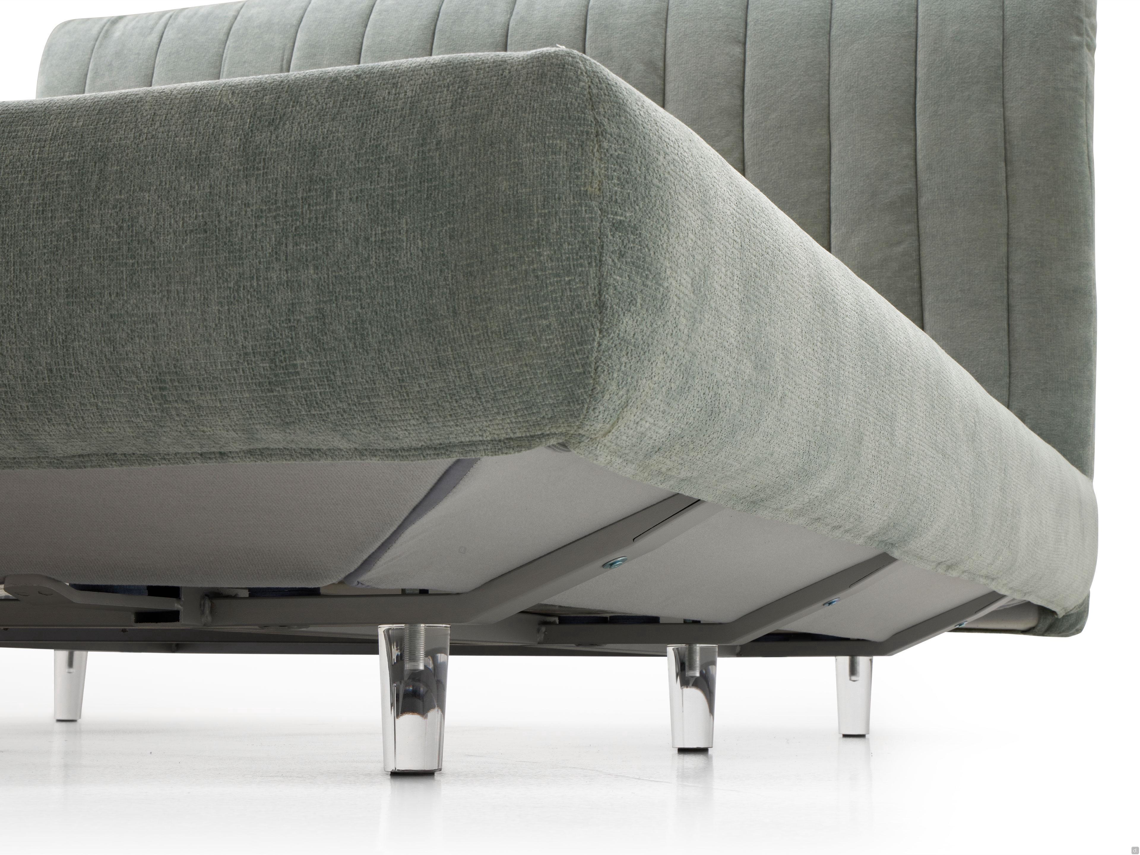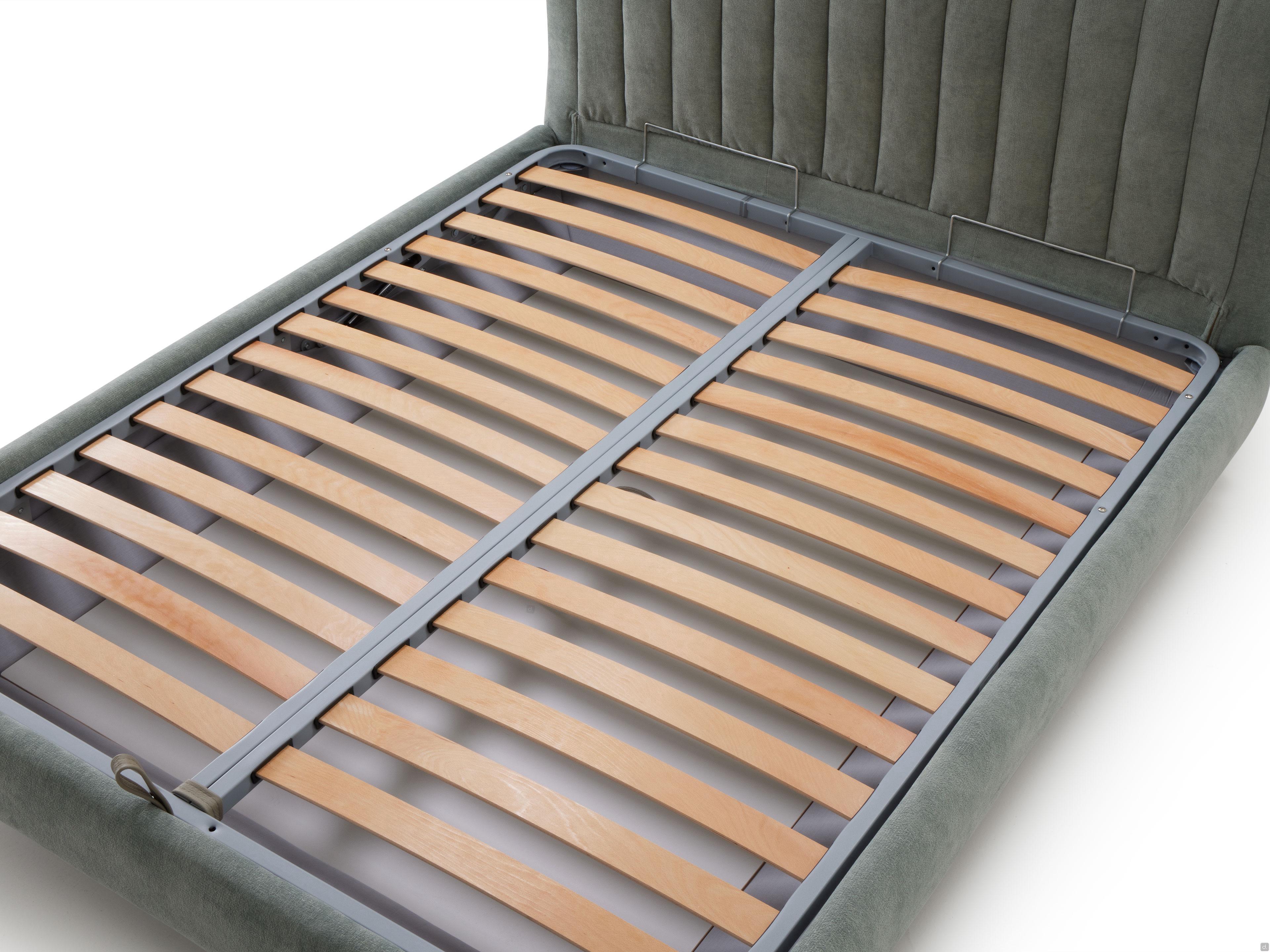 Storage container: internal height of the compartment equal to 14 / 20 cm; the 11 metal support points ensure that the box can support a weight of up to 75 kg/m2. The bottoms can be lifted for easy cleaning below the bed; rope handles. Simple lifting system that allows the diagonal lifting of the bed base for an opening with an angle between 35° and 40°; double lifting system that when lifting the bed horizontally optimises the movement of the bed base, protruding from the bed frame by only 10 cm in depth.