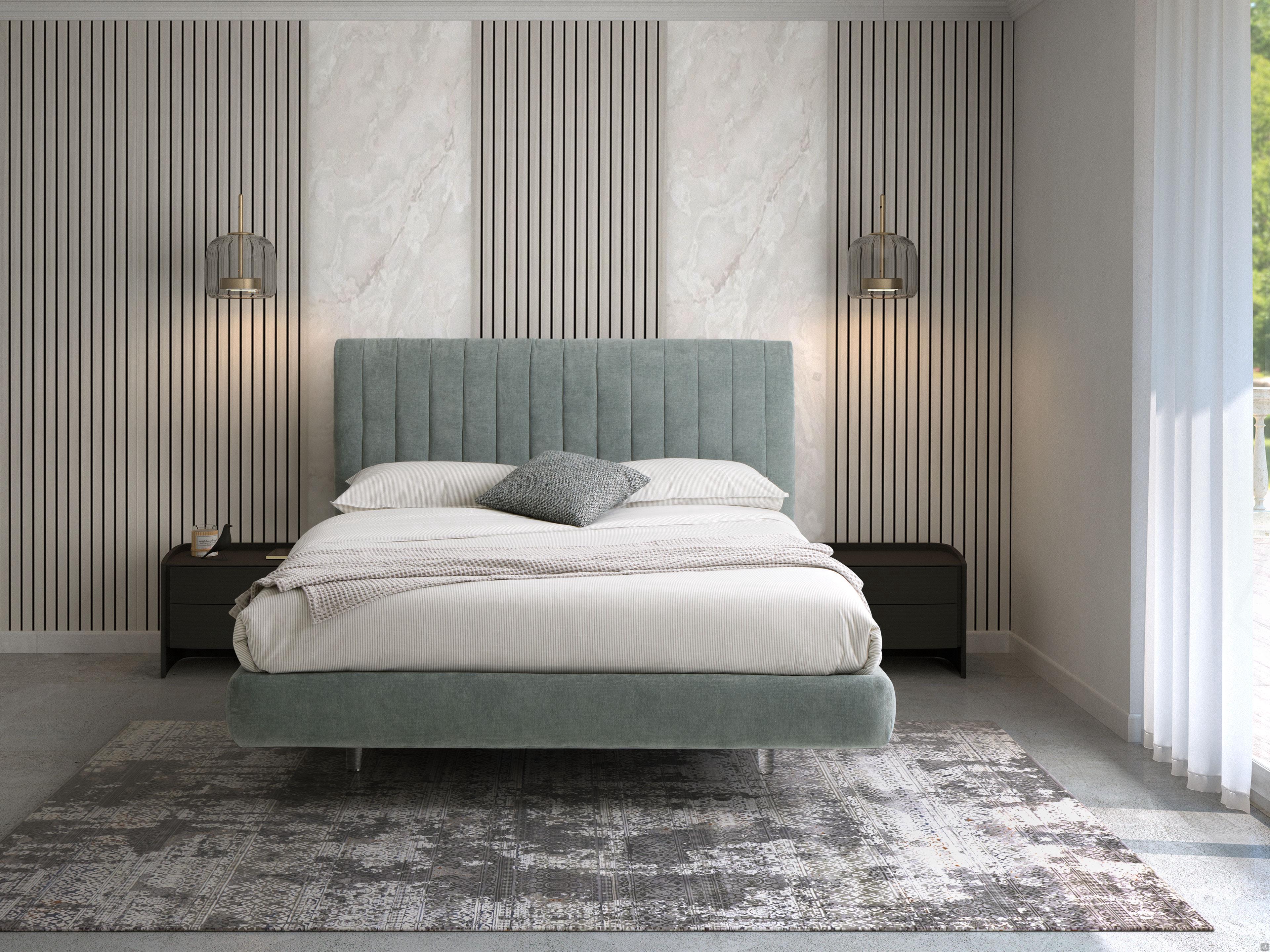 Bed Frame: in plywood with padding in non-deformable polyurethane foam D25 covered in acrylic wadding and velvet. Total thickness 6 cm.