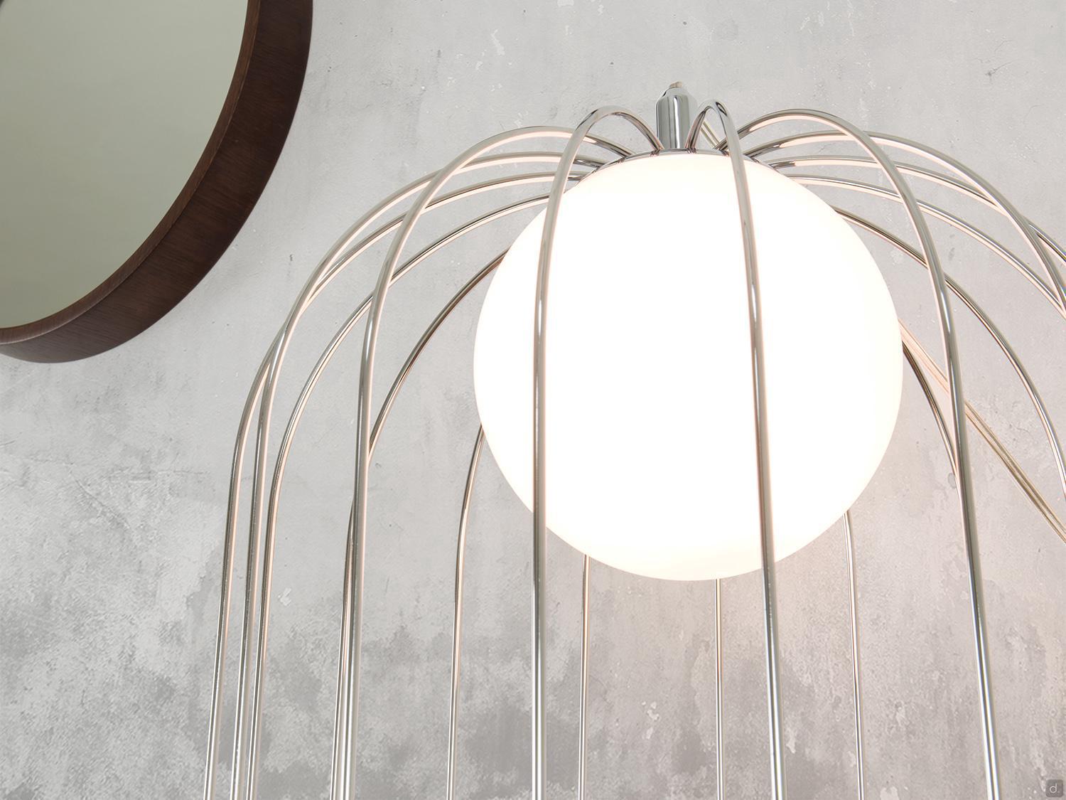 Materials and FinishesStructure:- chromed or galvanic copper metalLampshade:- milky white satin glass