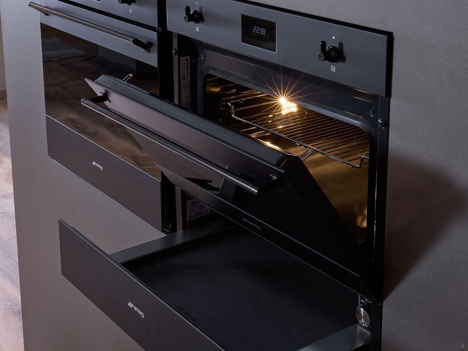 Smeg double oven with food warmer tray