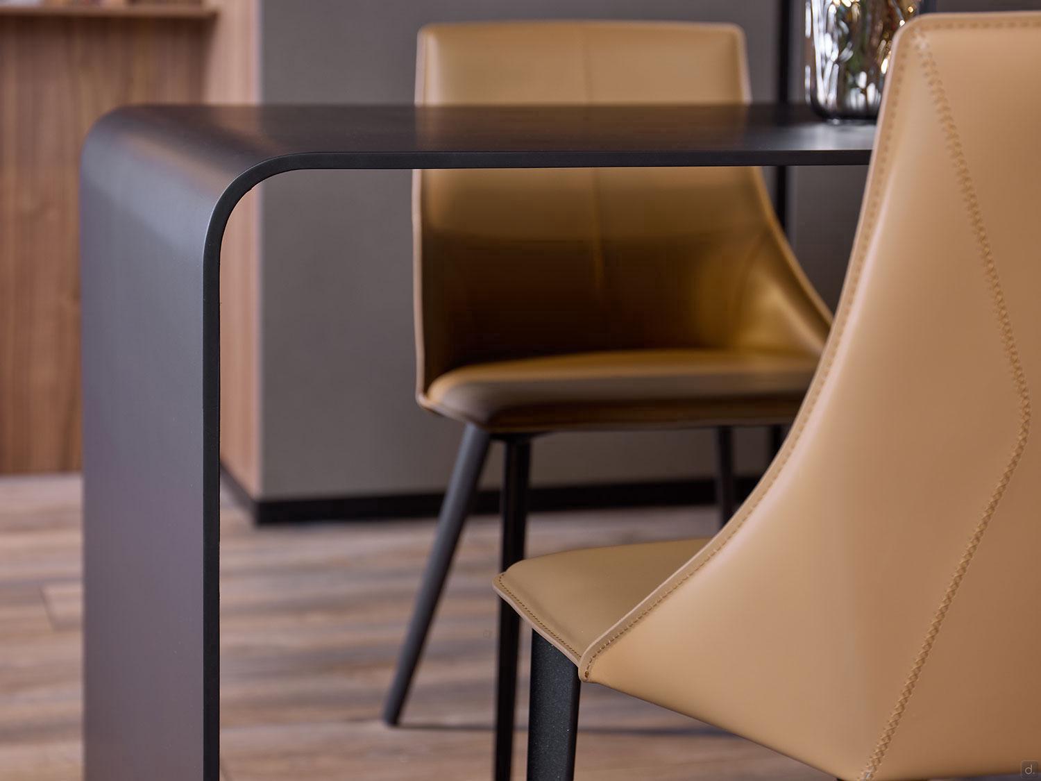 AluX 01 also features curved details in its accessories, such as the Brooklyn table, made of a single 10 mm thick panel of curved honeycomb aluminium rounded at the corners and finished in matte black lacquer.