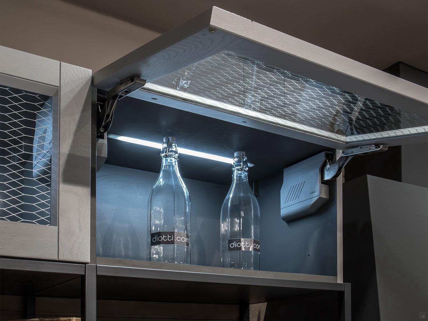 Characteristicskitchen cabinets with framed wooden doors, 100% Made in Italywall units with glass doors in a retro textured effectconvenient bars for utensils above the sinkcolumns customizable with different appliances