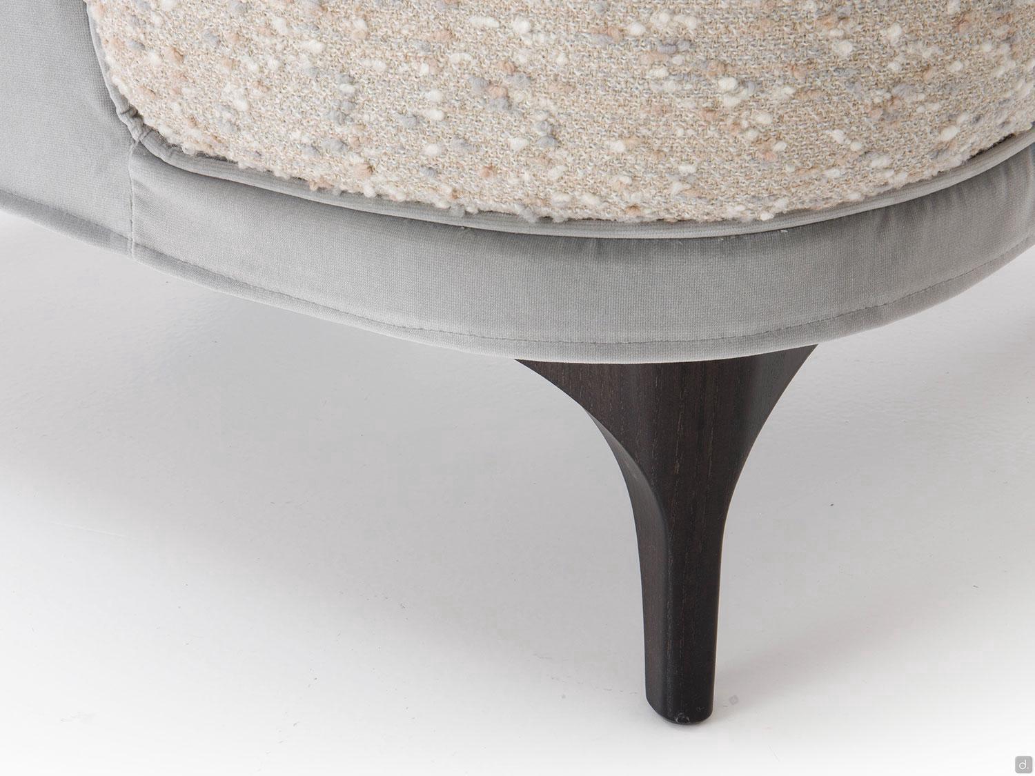 Amanda outlet is a low armchair without armrests with harmonious and compact proportions: only 70 cm wide, it is ideal in the living room to create a reading or conversation corner, but also in a passage space or bedroom. The high ash wood feet lift it off the ground and support a generous and comfortable upholstered seat despite its small size. The low backrest is slightly curved at the sides and accommodates a comfortable down cushion.The two-tone upholstery, which harmoniously combines a wool-blend bouclé fabric, used for the inner backrest and seat, and a writing-effect velvet, for the frame and backrest, elegantly characterises Amanda.