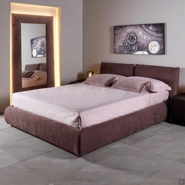 Astoria outlet double upholstered bed with storage unit covered in leather