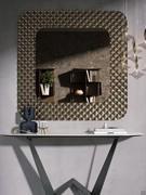 Talete is a round mirror with bronze frame, also available in square and rectangular versions. The distinguishing feature of this wall mirror is its large frame, embellished with a special studded-effect surface obtained by casting glass inside a mould.