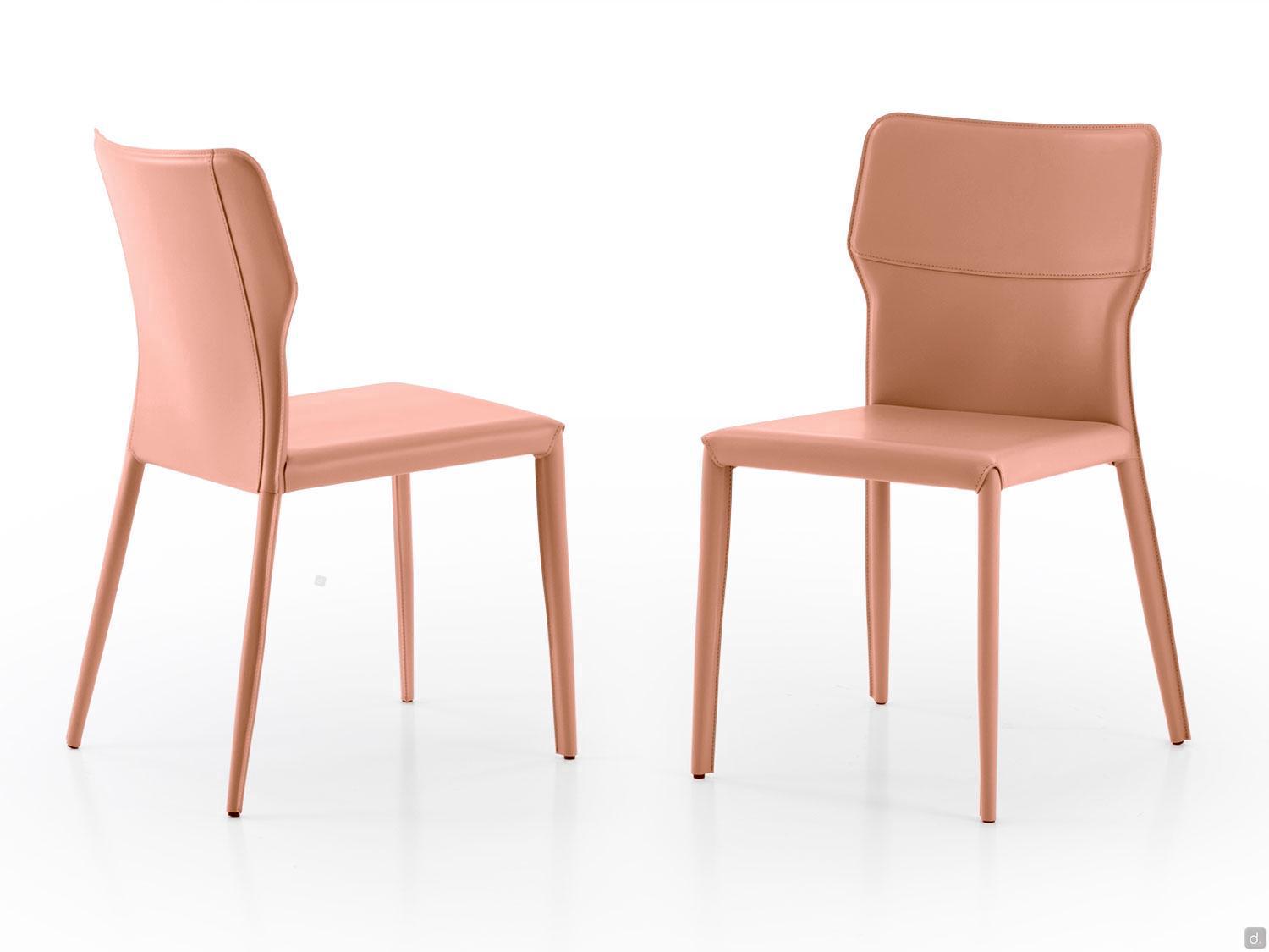 Denali outlet is a set of 4 fully upholstered chairs . The comfortable seat and high, contoured backrest are padded and ergonomically proportioned to ensure maximum comfort and allow for prolonged use. The refined style and clean lines make it perfect for a dining room with contemporary taste.Denali outlet is available in leather in a delicate salmon colour.The upholstery has been tailor-made; the quality of the matching stitching and the attention to detail are indispensable features of the quality standards of a 100% Made in Italy product.
