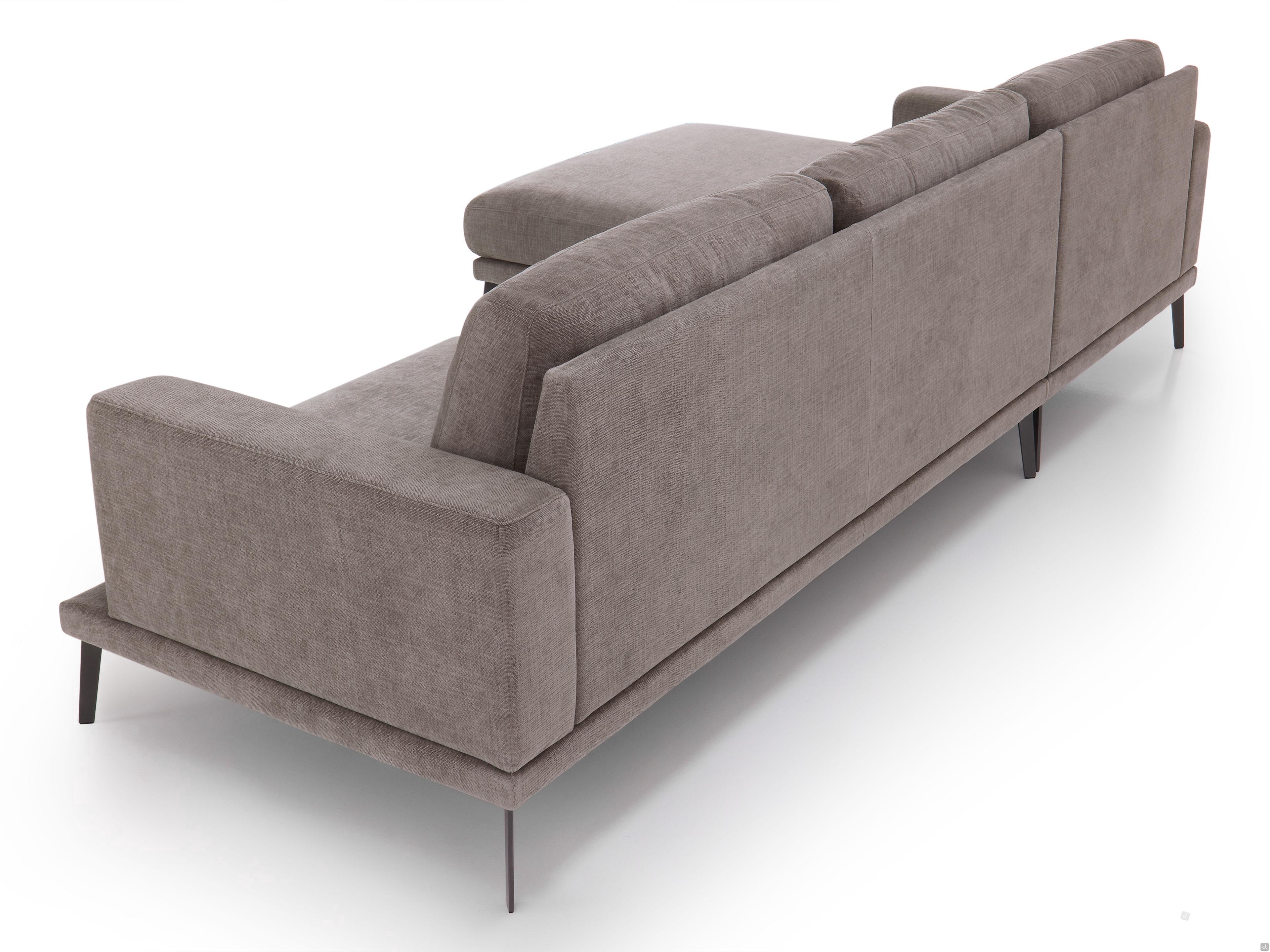 Characteristics sofa with chaise longue with simple and rigorous forms totally removable fabric cover high anthracite-painted metal feet for a pleasant "suspended effect can be wall-mounted or placed in the middle of the room