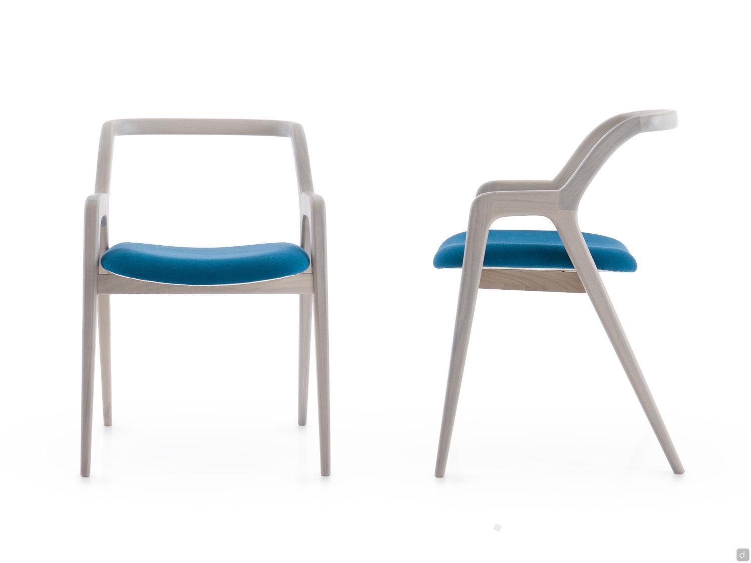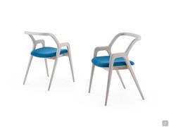 Nakama is a solid wood chair with upholstered seat made of walnut wood with a fabric, velvet, faux leather or leather upholstery cover, available in several colours. This chair is characterised by its minimalist yet extremely refined design, as well as the attention to detail which is demonstrated by the curved, wrap-around backrest. Each piece is carefully designed and crafted so that the legs, armrests and backrest look like they come from one single block of wood. The Nakama chair is perfect in living areas or in modern home offices.