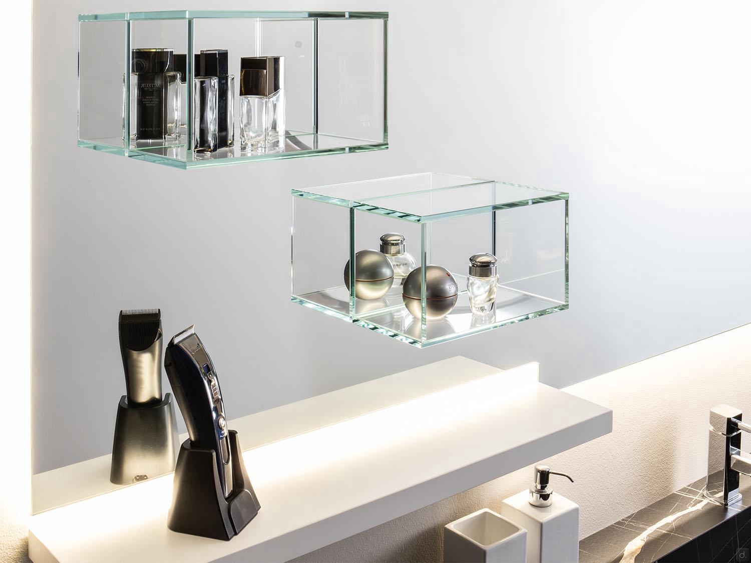 Technical Specifications and EquipmentThe bathroom cabinet includes:1 washbasin base unit with deep drawer cm 88 d.50 h.45. The drawer is not shaped but is fitted with a sanitary cavity at the bottom to allow the passage of the siphon.1 side base unit with drawer cm d.50 h.45, customisable in width from a minimum of 34 cm to a maximum of 70 cm. Equipped with an additional internal drawer.1 top in stratified HPL cm d.51 th.1,2, customisable in width from a minimum of 127,5 cm to a maximum of 162,5 cm. The top is equipped with an integrated free-flow basin. The dimensions of the large basin are cm 68 d.32 h.12 / 14,5.2 side panels cm th.2 to complete the sides of the base units.1 mirror with led backlighting, variable in width between 123 and 158 cm h.75, equipped with 2 open glass compartments, cm 25 h.15 d.13 each. The mirror features a slot to accommodate the shelf.1 shelf between 35 and 70 cm in width, d.17 th.3.Maintenance TipsUse a soft, damp cloth to remove any deposits of dust or other dry material, without scrubbing to avoid scratching or abrading the top. Clean the surface with diluted, non-abrasive detergents and a soft, non-abrasive sponge. Rinse thoroughly with clear lukewarm water and dry thoroughly with a soft, dry cloth or sheets of kitchen roll. To remove limescale stains, use ordinary kitchen vinegar and leave it on the affected area for up to 5 minutes, then rinse and dry thoroughly.For More Information...Stratified: This is a thick (10 mm) laminated HPL made up internally of layers of cellulose fibres impregnated with phenolic resins. The outer layers are impregnated with heat-setting resins. The material is subjected to the polycondensation of the resins with strong pressure combined with the heat of 150° during pressing. The surface is rough to the touch. It is a material of innumerable virtues, which has a wide range of applications where a high level of hygiene is required. It is a non-porous material that does not generate mould or bacterial growth and is resistant to scratching, impact and wear. It is characterised by high resistance to chemical and organic agents and high impermeability. It is dust-proof, easy to clean, non-toxic and suitable for food contact, environmentally friendly, heat-resistant up to 170° and flame-retardant.