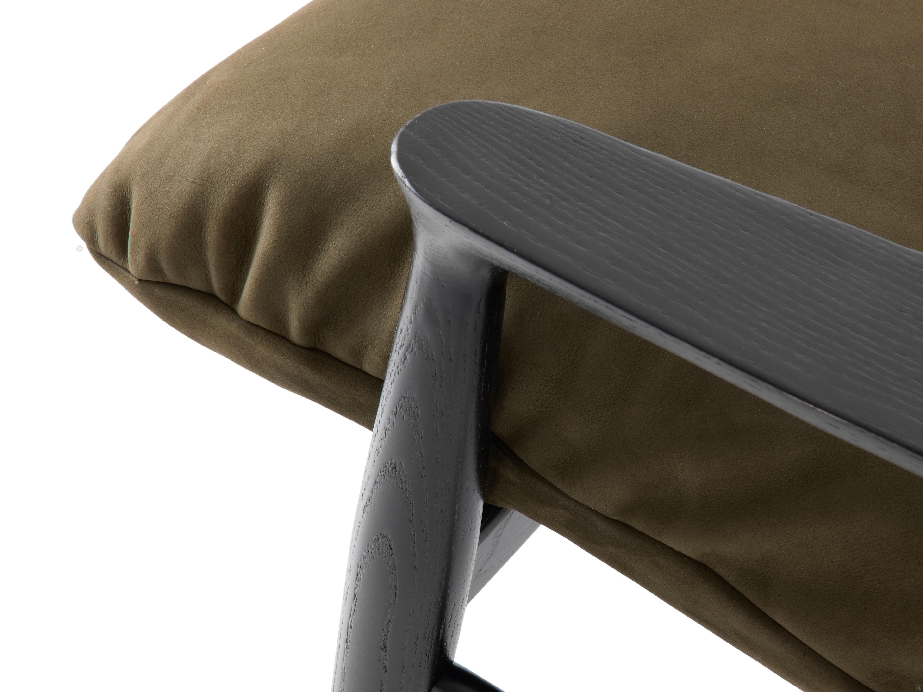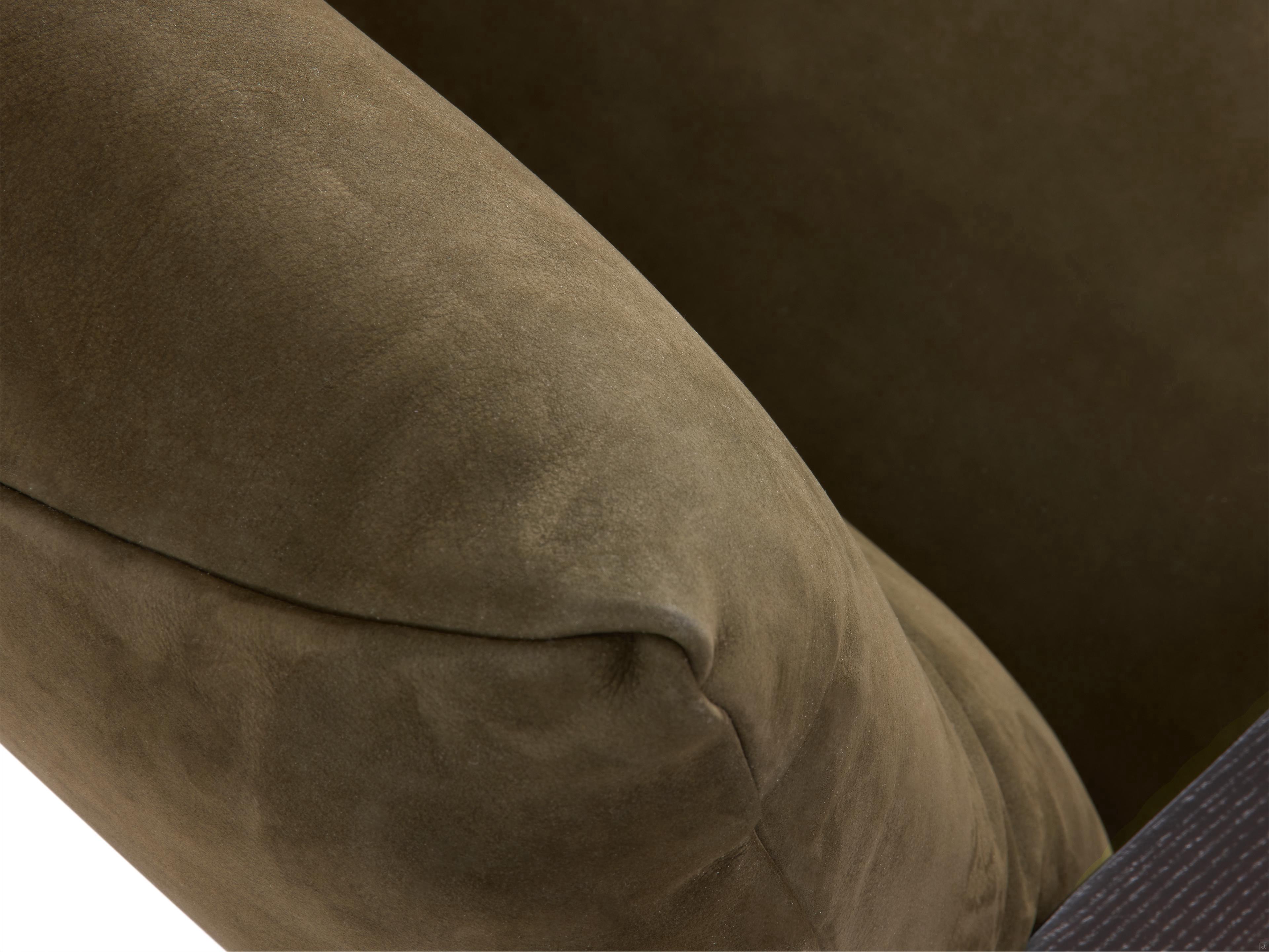 Materials and Finishes- upholstery: smooth Sage-coloured Nabuk leather (completely removable)- structure: Moka-stained oak wood