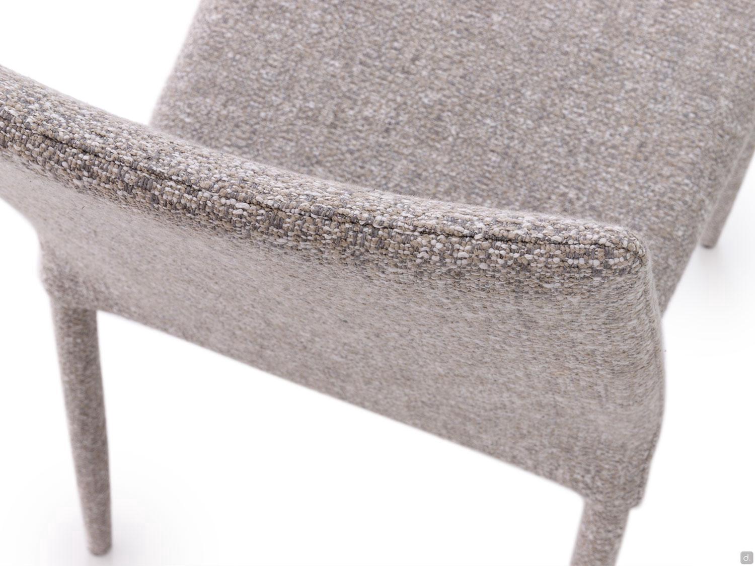 Akira 2.0 outlet is a set of four upholstered chairs ideal for accompanying important tables in the living or dining room area. The extreme versatility in positioning is permitted by a very simple and linear design enhanced by the elegant covering realised with a woven melange fabric with a hint of bouclè effect. The craftsmanship achieves a very high level of quality that shines through in the finish of the stitching and in the design and ergonomic details of the chair.