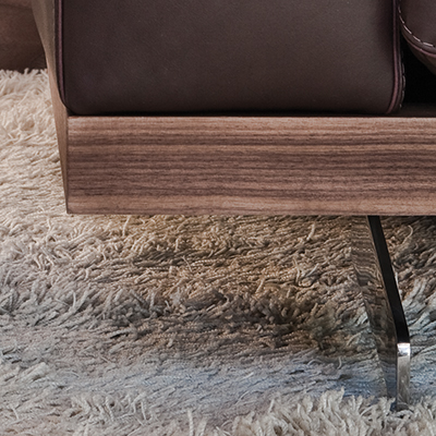 The Raymond sofa is designed to offer extraordinary comfort: the backrests are padded with foam of various densities. In the large seat cushions, a layer of down is added to the foam padding to guarantee support and softness. The wide armrests are embellished by a pleat on the cover which highlights their slight outward inclination.
