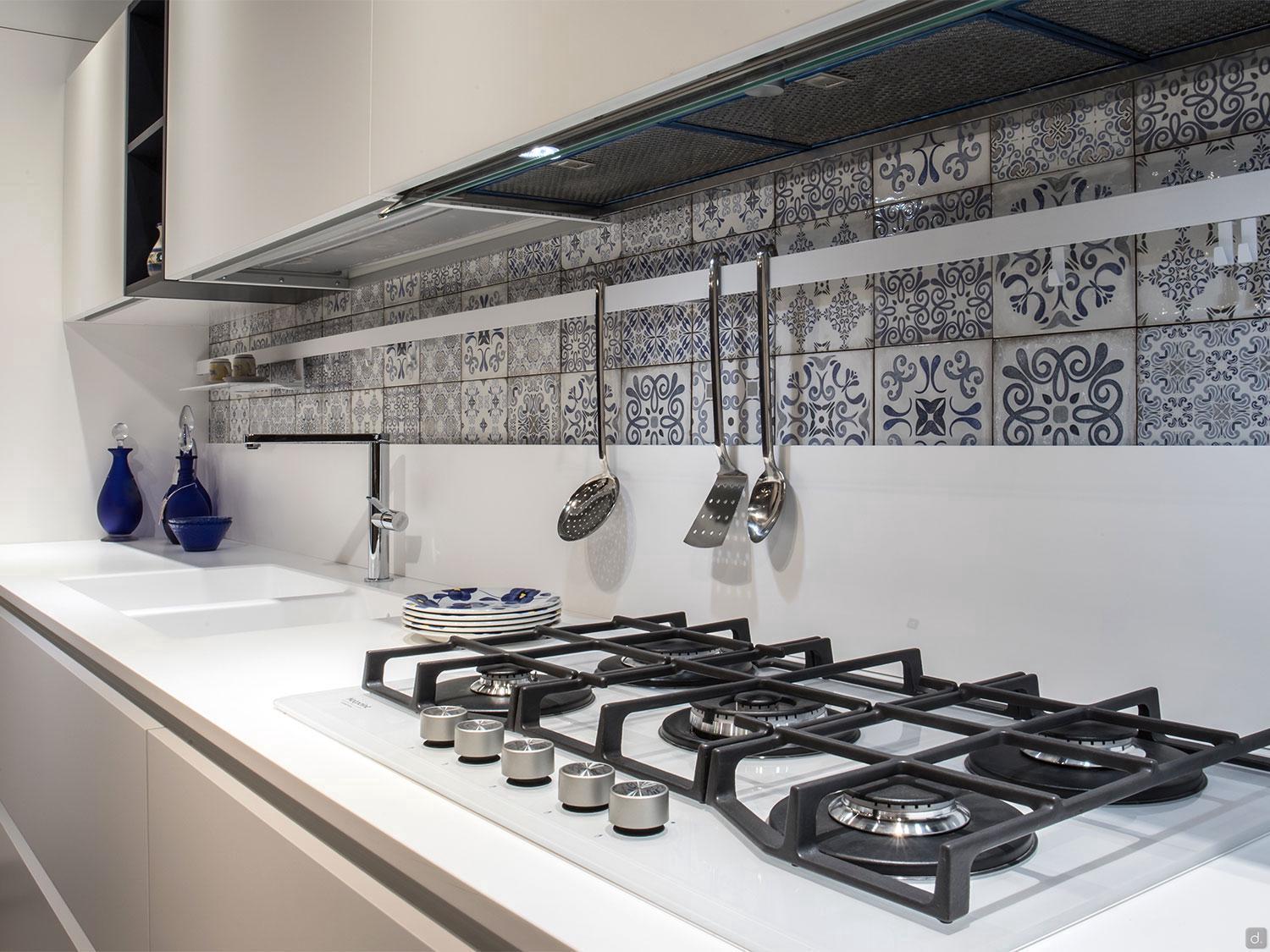 shown here in matt white, the kitchen can be customized in other colours, also high glossy ones, melamine, cement effect or wood
