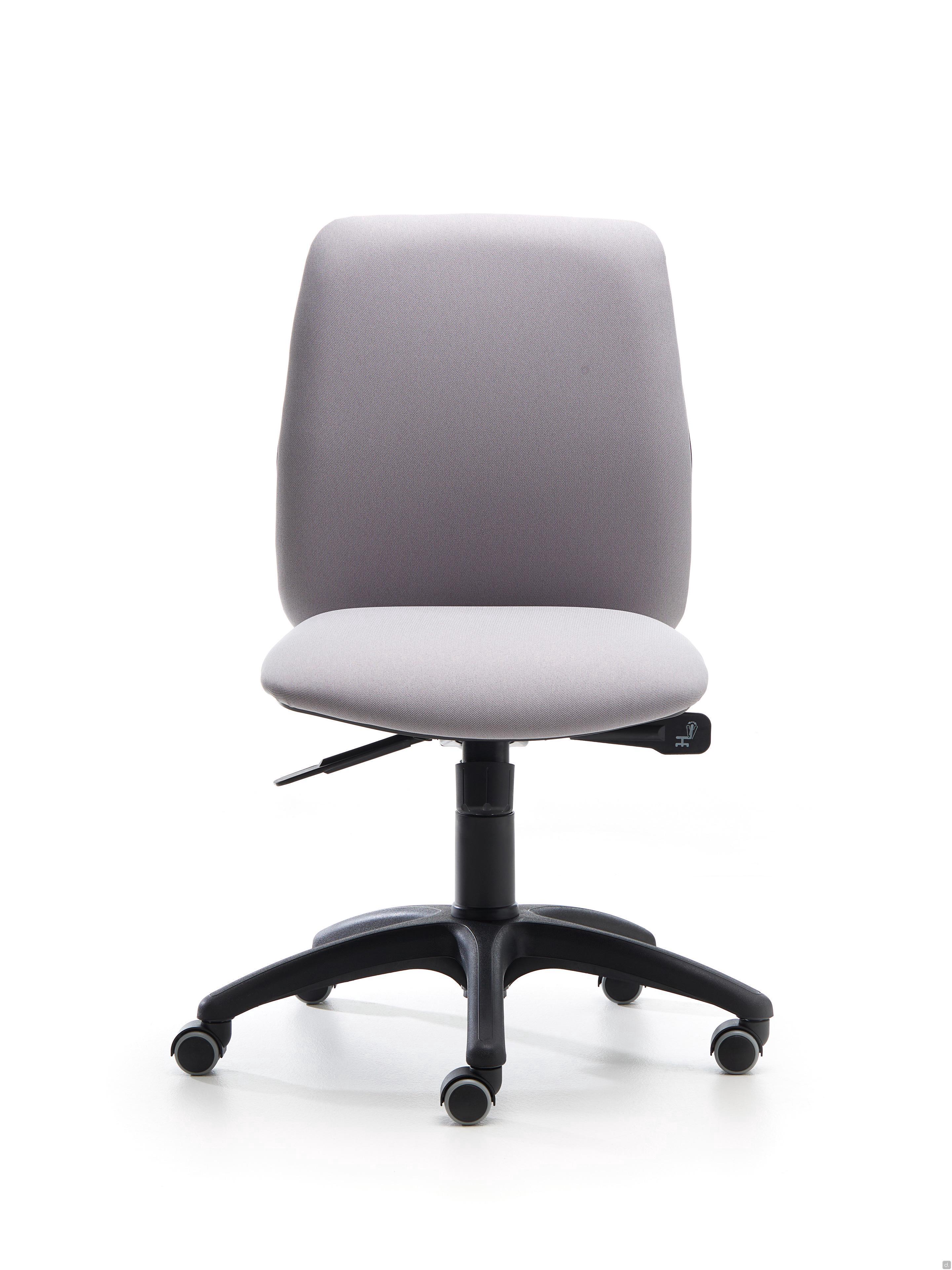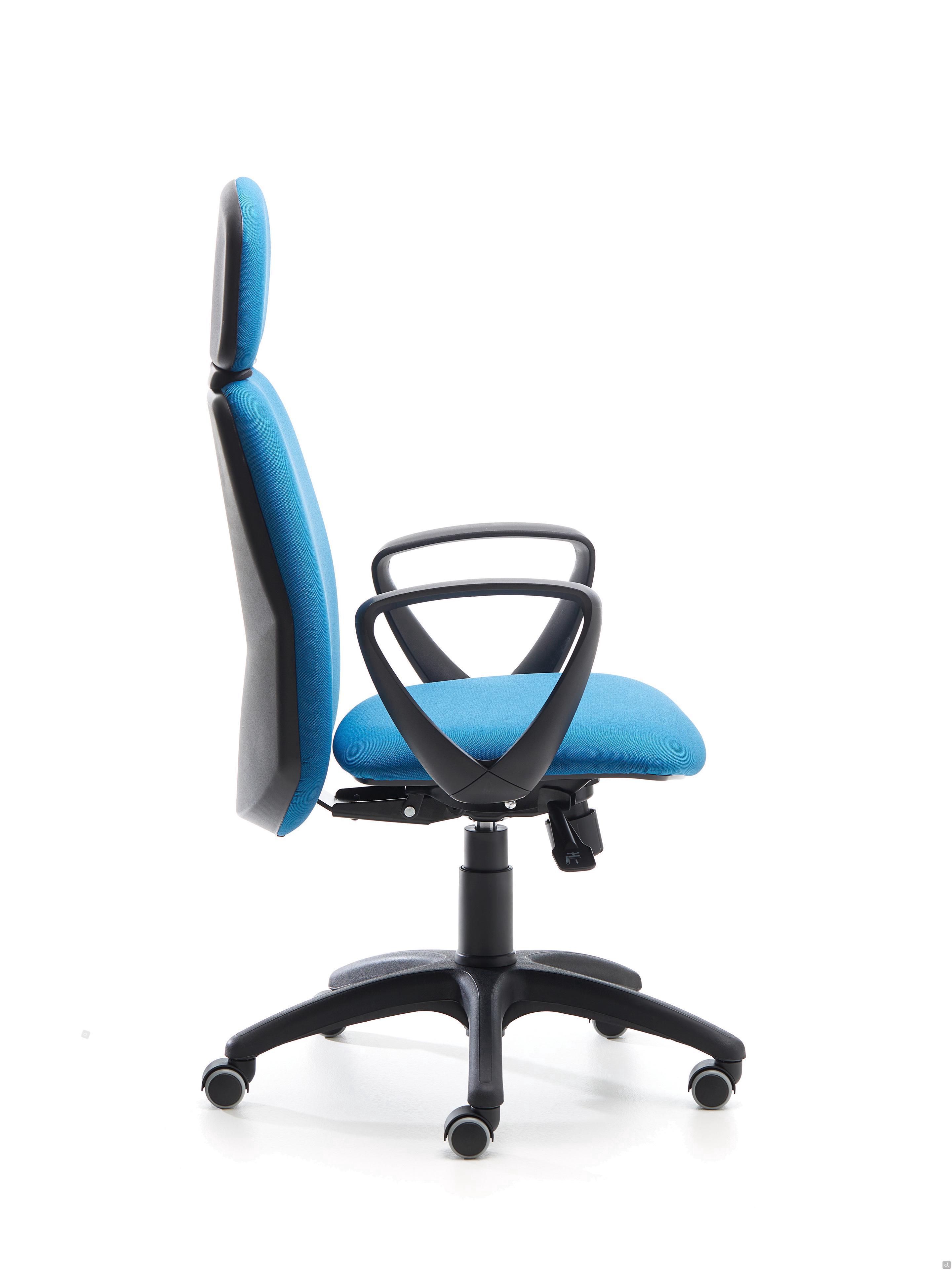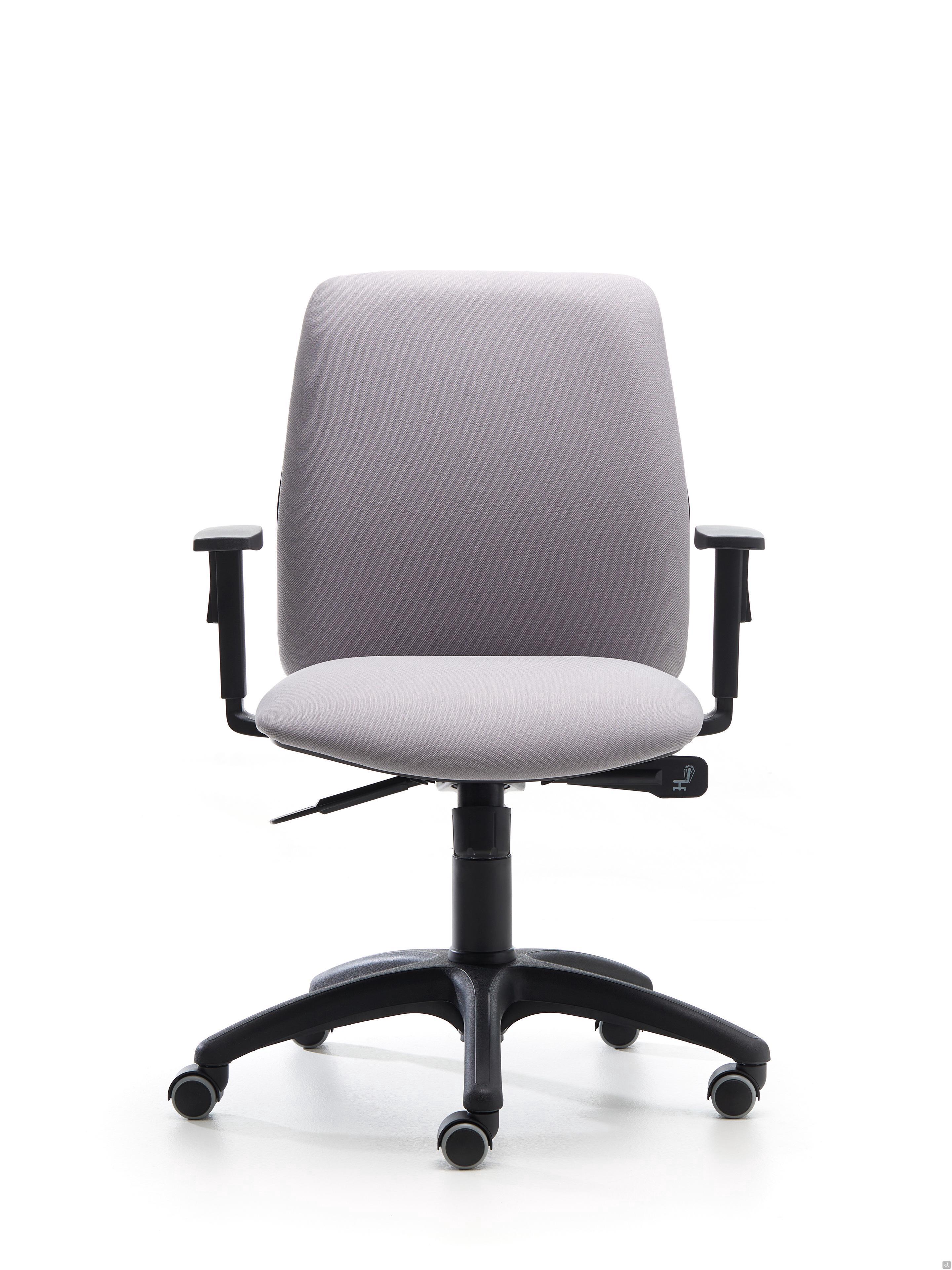 Jack is a workstation chair with medium backrest and with optional armrests; also available with a fixed upholstered headrest. The spoke base is available in black or grey polyammide and polished or painted aluminium.The wide range of fabric and faux-leather covers available allows for a great customisation, this operative chair is swivel, it lifts-up and comes with a synchronous mechanism to adjust backrest and seat at the same time.