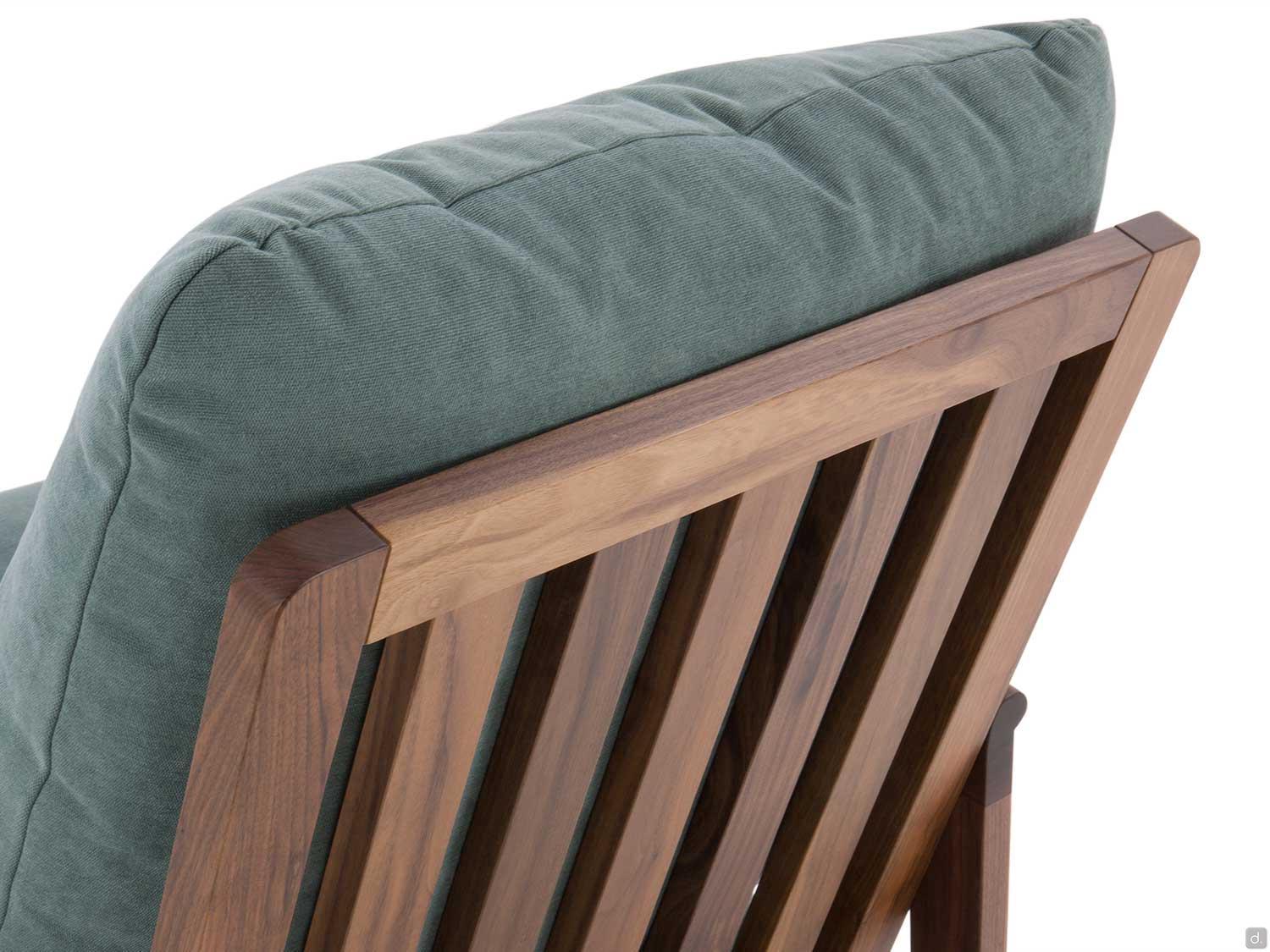 Yumi è una poltrona a dondolo in legno massello di noce con cuscini imbottiti indipendenti su seduta e schienale. La struttura con braccioli è disponibile in noce naturale o grigio con finitura acrilica, mentre i due cuscini in appoggio sono personalizzabili grazie all'ampio assortimento di tessuti, vere pelli, velluti e similpelle.La poltrona a dondolo Yumi regala momenti di relax reinterpretando un classico in chiave contemporanea, unendo la sapiente lavorazione artigianale del legno massello.