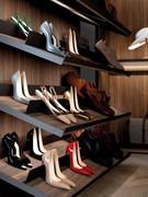 Tablette à Chaussures : en bois avec choix de finition et réhaussement en métal laqué mat ou métallisé.
