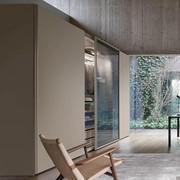 porte centrale en teinte avec l'armoire ou bien en verre fumé avec cadre et poignée intégrée