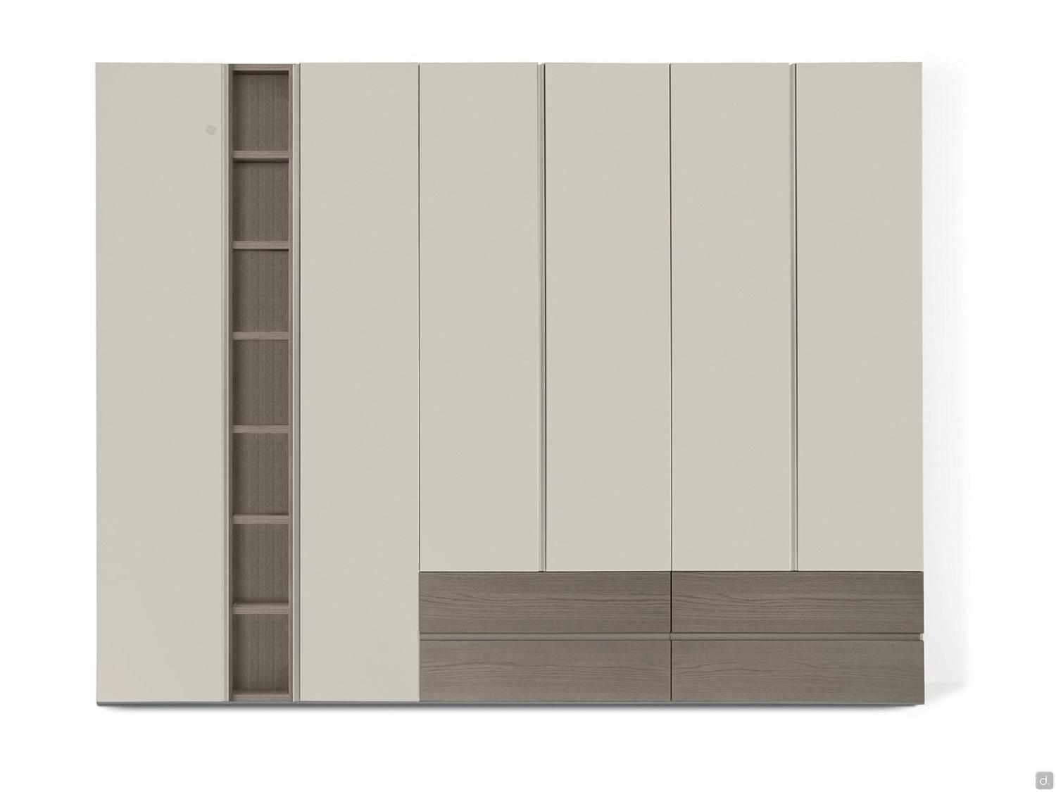 L'armoire ouverte librairie Pacific offre une liberté de composition maximale, entièrement personnalisable en termes de dimensions et de finitions. Doté de nombreuses étagères, Pacific est proposé comme élément fonctionnel ouvert entre les modules d'armoires de la même collection.