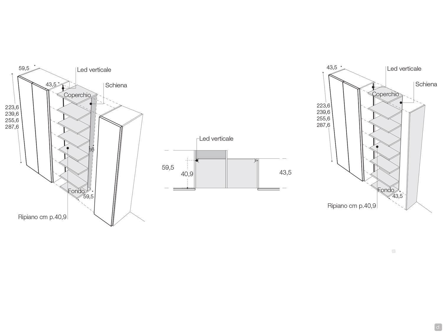 Hauteur : cm 223,6 / 239,6 / 255,6 / 287,6