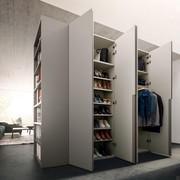 Charnières : en métal peint en titane, avec ouverture à 110° et équipées d'un mécanisme de fermeture douce assistée (à l'exception des portes push-pull, qui n'en sont pas équipées). Les portes sont équipées de charnières n.4 jusqu'à une hauteur de 229,5 cm, et de charnières n.5 pour les hauteurs supérieures.