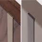 Portes Coulissantes: panneau central alvéolaire ép.2,8 cm avec cadre en bois massif de sapin, en laqué ou bois. Les portes en verre, Laminam ou avec revêtement sont dotées d'un cadre en métal de couleur brune ou en laqué métallique, avec poignée intégrée assortie. Les devants peuvent être lisses ou personnalisés (uniquement en finition laquée ou bois):