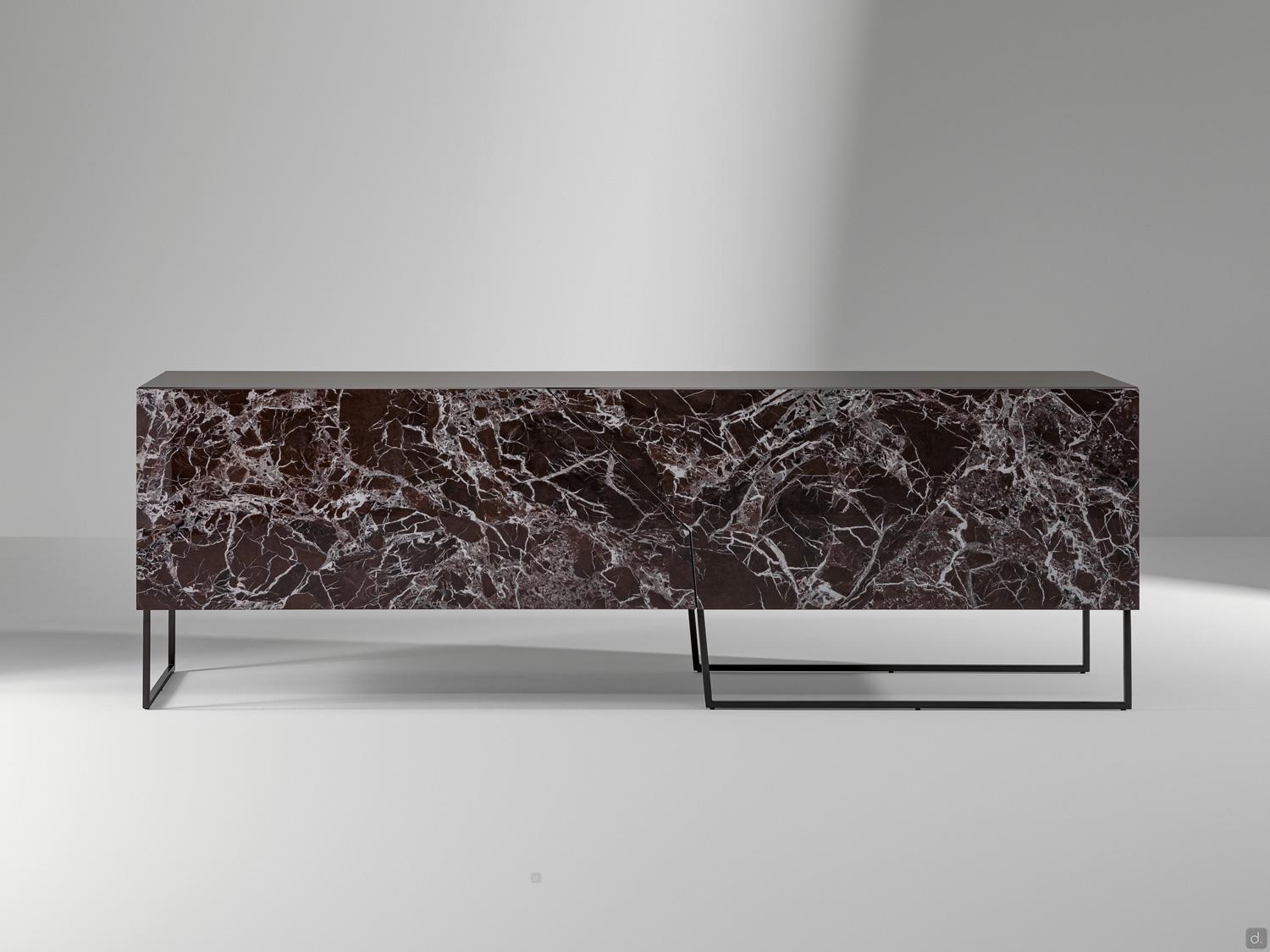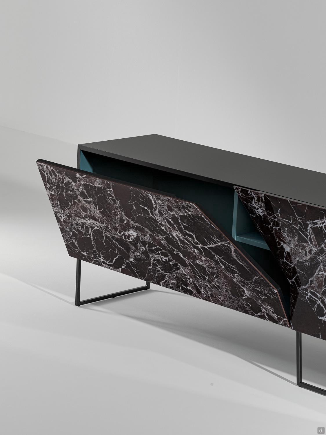 Doppler K de Bonaldo est un buffet moderne avec portes en céramique design, dont les portes sont caractérisées par des formes asymétriques et originales et équipées d'ouvertures à abattants qui permettent de disposer de tout l'espace à disposition. Les pieds en métal aux lignes minimalistes donnent un effet d'extrême légèreté à la structure. Doppler K est également disponible dans la version bahut à 2 portes battantes. Son design est mis en valeurs par la particularité des devantures en pierre céramique mate ou brillante, déclinée en multuples variantes.