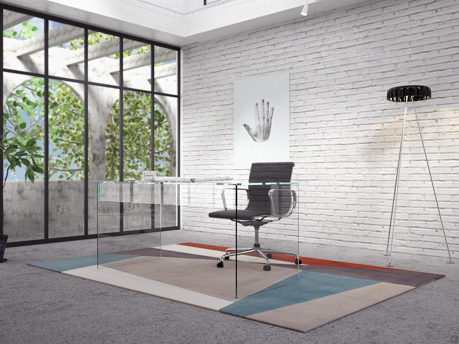 Le bureau entièrement en verre Multiglass est une solution élégante et pratique en appui contre un mur ou au centre d'une pièce. Les finitions disponibles sont en verre transparent naturel, extra-clair, fumé, bronzé ou bien en verre rétro-laqué dans un ample choix de couleurs. Le bureau Multiglass est idéal pour compléter un bureau, un studio ou un home-office.