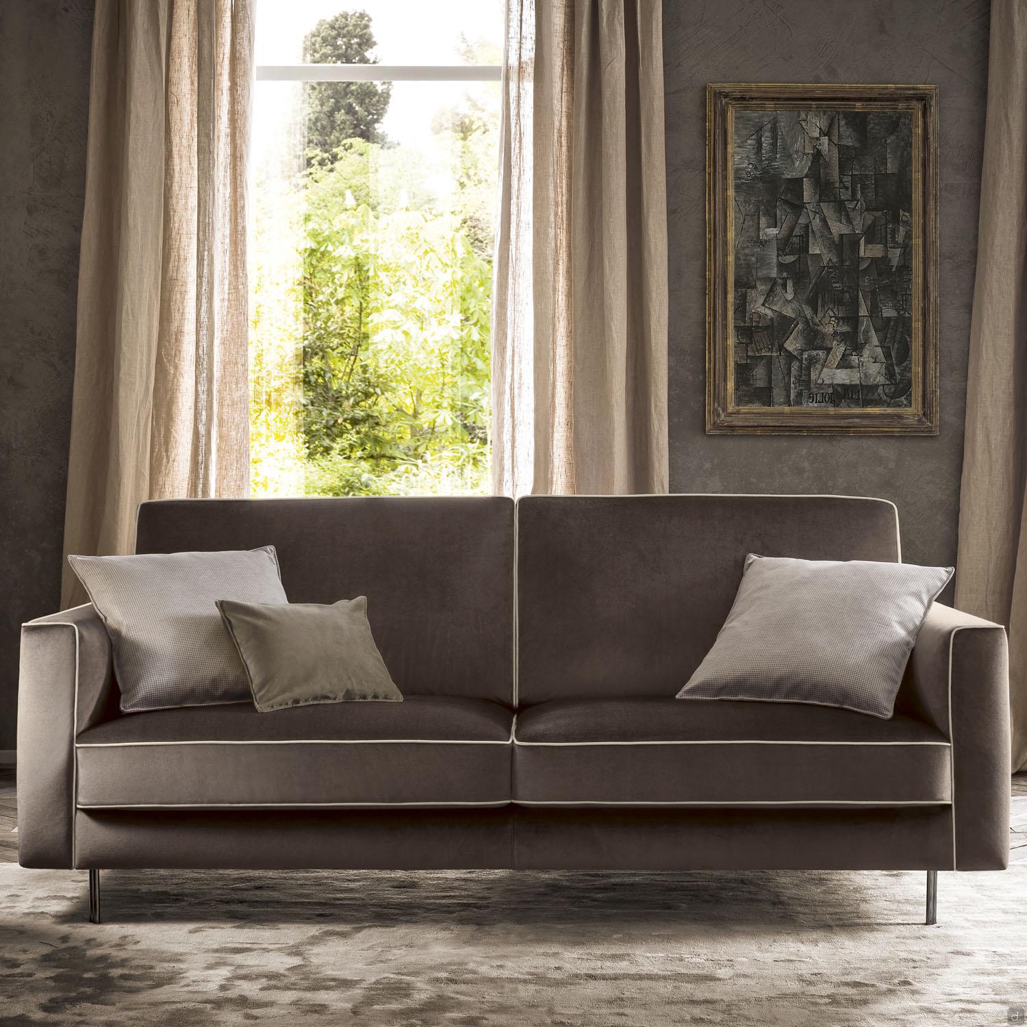 Oakland est un canapé 3 places en tissu entièrement déhoussable, également disponible avec un revêtement en velours et en similicuir. Oakland se distingue par ses lignes épurées et ses assises et dossiers amples et moelleux. Sa structure est supportée par des pieds de style minimaliste donnant un aspect de légèreté à l'ensemble, déclinés dans un modèle standard et en version pieds luge. L'aspect épuré des formes et de la structure peuvent être valorisés au maximum en choisissant un passepoil assorti ou contrasté au revêtement du canapé.