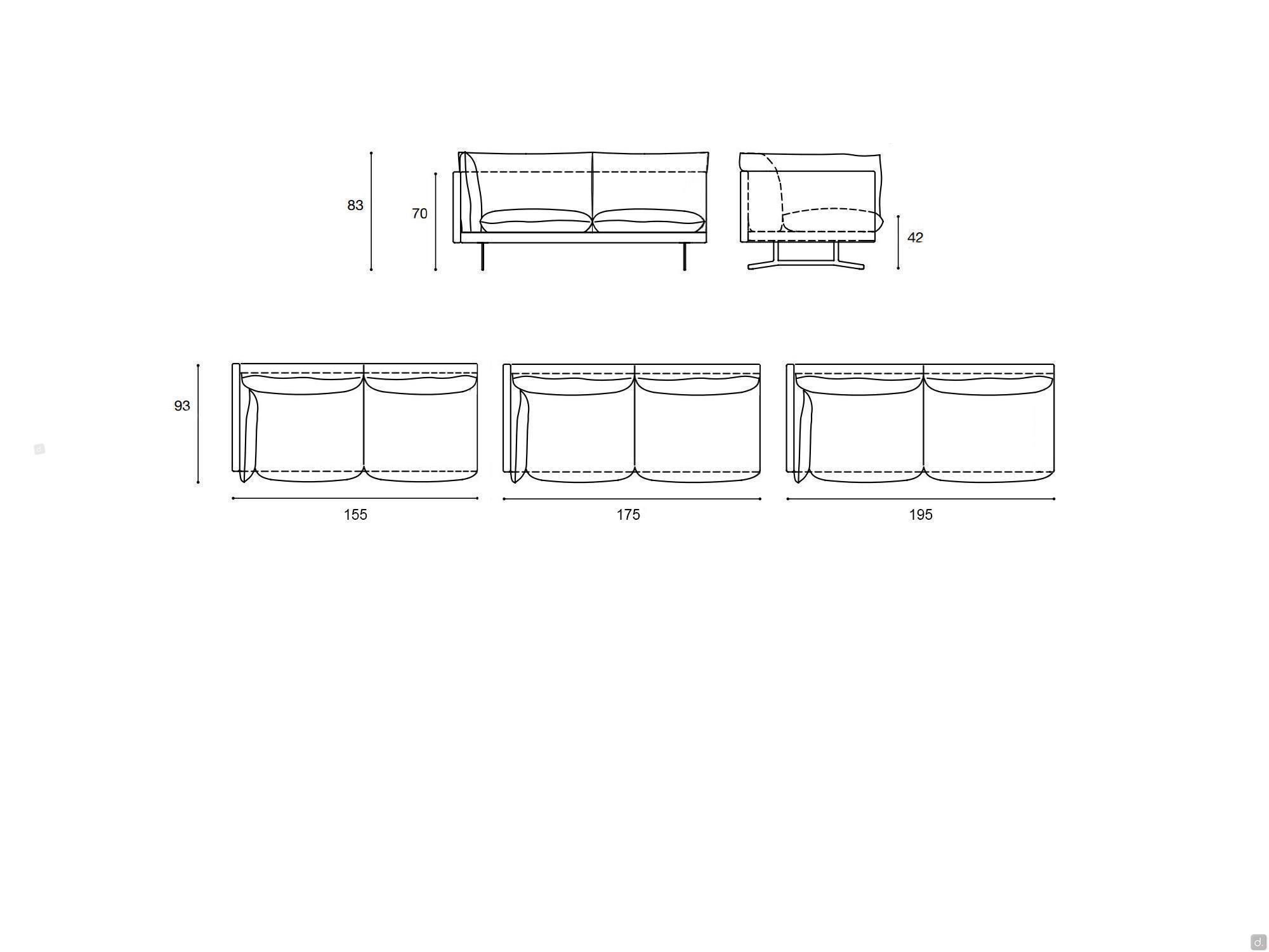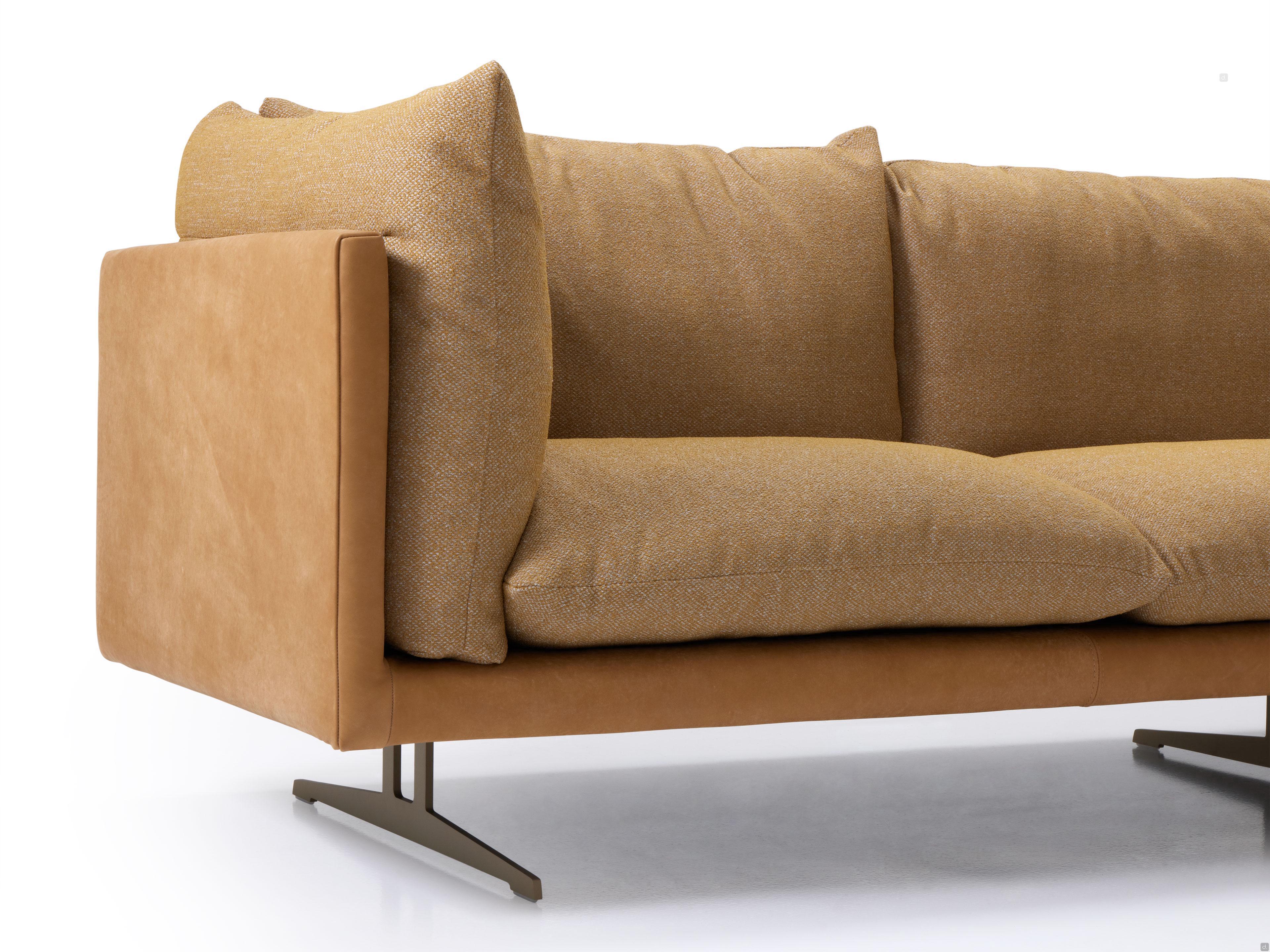 Aker est un canapé design avec coussins en plumes, caractérisé par des pieds hauts en métal verni. Le rembourrage souple des coussins adoucit les lignes rigoureuses de la structure de la base.Aker est un canapé à l'assise informelle et aux dossiers déstructurés, à l'aspect moelleux et accueillant.Il est disponible dans cinq largeurs et deux variantes de fauteuil. En outre la large gamme de revêtements disponibles dans la page des échantillons fait du canapé Aker parfaitement adaptable à tout type de mobilier dans le salon.