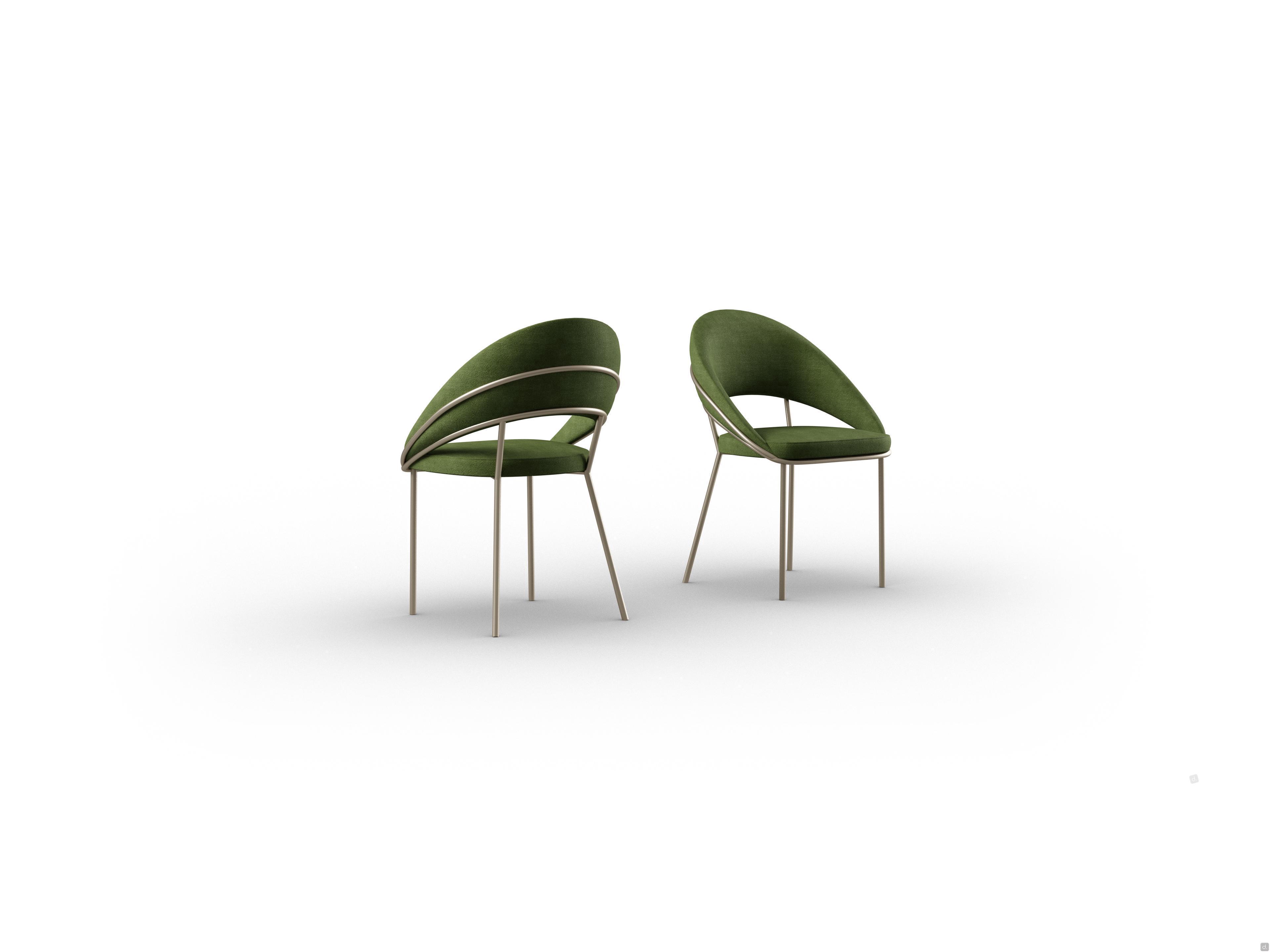 Kiki è una sedia imbottita con struttura in metallo verniciato e rivestimento in tessuto, velluto, similpelle o pelle in più colori: un'ampia scelta per facilitare l'abbinamento alle tonalità presenti in ambienti già arredati.Lo schienale avvolge e garantisce un buon sostegno alla fascia lombare aumentando il comfort complessivo. La struttura in metallo verniciato regge la parte imbottita con un tubolare sottile ad anello che tiene unita la seduta con lo schienale. Il design delle componenti in metallo sottili raccoglie le parti imbottite e crea un'elegante geometria di forme stondate capaci di impreziosire sale da pranzo e living dal gusto ricercato.