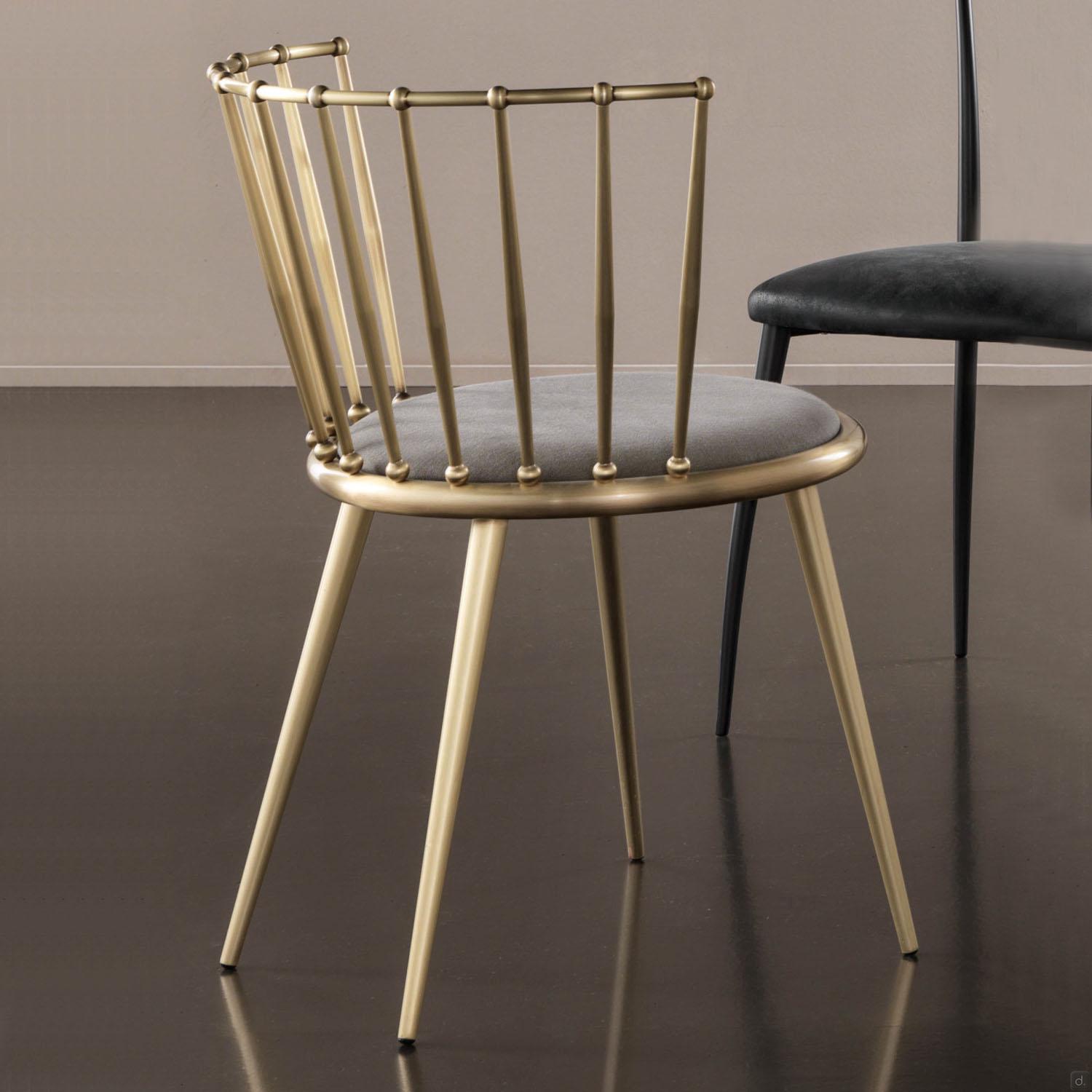 Chaise en métal avec assise rembourrée Aurora de Cantori avec dossier à barreaux ou revêtu de tissu, velours, cuir mince ou simili cuir.