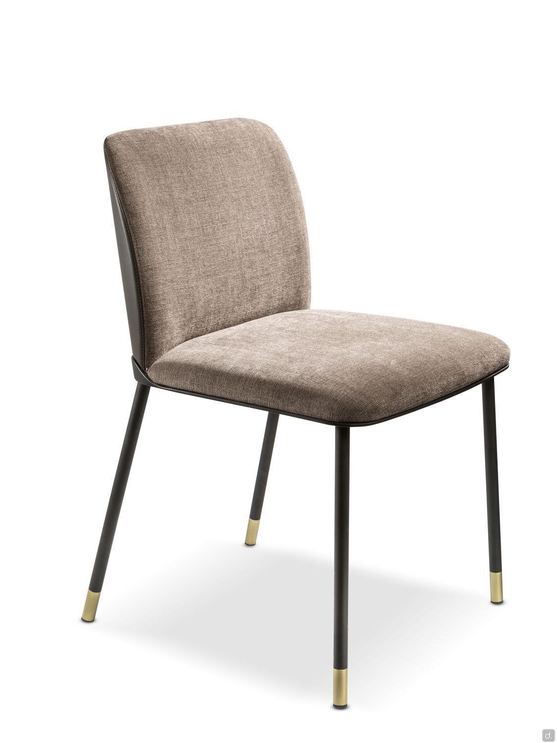 Chaise rembourrée Oasi en métal bicolore de Cantori, avec finition en tissu et simili cuir ou cuir. Disponible également en version monochrome.