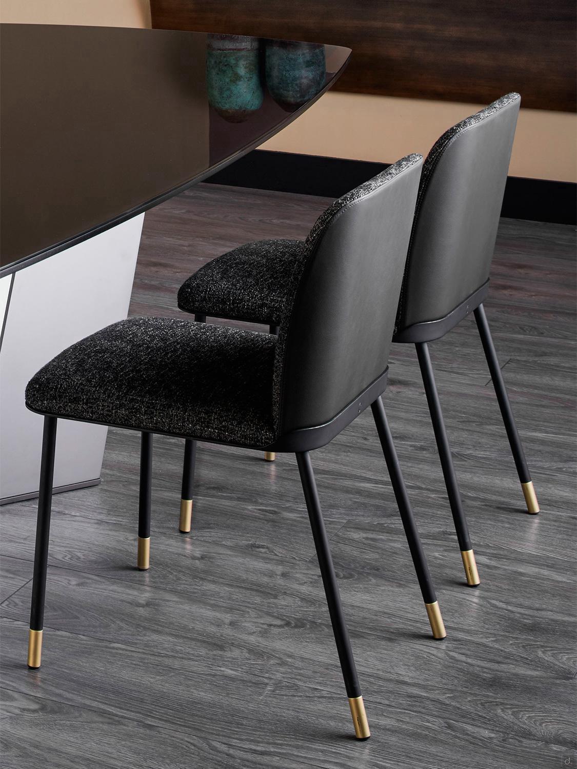 Oasi de Cantori est une chaise rembourrée en métal bicolore, partie intégrante de la collection Oasi dont elle reprend la bordure métallique particulière à la base du dossier. L'originalité de la chaise Oasi réside dans la possibilité de l'avoir avec une finition bicolore, en séparant le dossier extérieur (disponible en similicuir ou en cuir) de l'assise et du dossier intérieur, auxquels une large sélection de tissus est dédiée. Pour un look plus traditionnel, il est toutefois possible de configurer une version monochrome de la chaise, avec un large choix de cuir et de similicuir.Pour compléter cette chaise simple mais élégante, qui s'accorde avec tous les autres éléments de la collection qui lui donne son nom, nous trouvons des viroles en laiton sur les pieds : des éléments contrastants qui attirent l'attention sur un complément de haut niveau et soulignent le soin que Cantori porte aux détails et aux finitions de qualité.