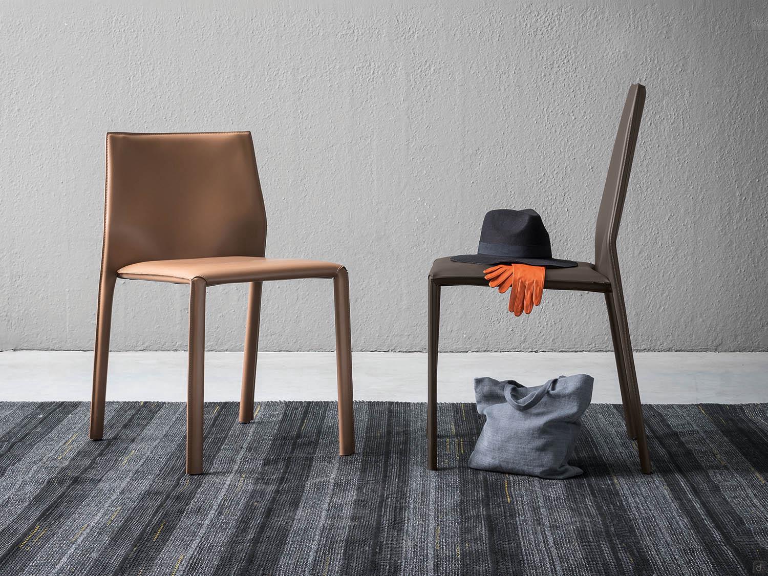Corinne est une chaise revêtue en cuir disponible dans un choix de trois couleurs avec des coutures assorties. La chaise entièrement rembourrée est également disponible en véritable cuir dans différents tons de couleur. Le dossier incurvé est conçu pour s'adapter parfaitement au dos et assurer un confort d'assise maximal. Corinne est disponible avec un dossier bas pour un style plus informel ou avec un dossier moyen pour un look plus élégant et raffiné.
