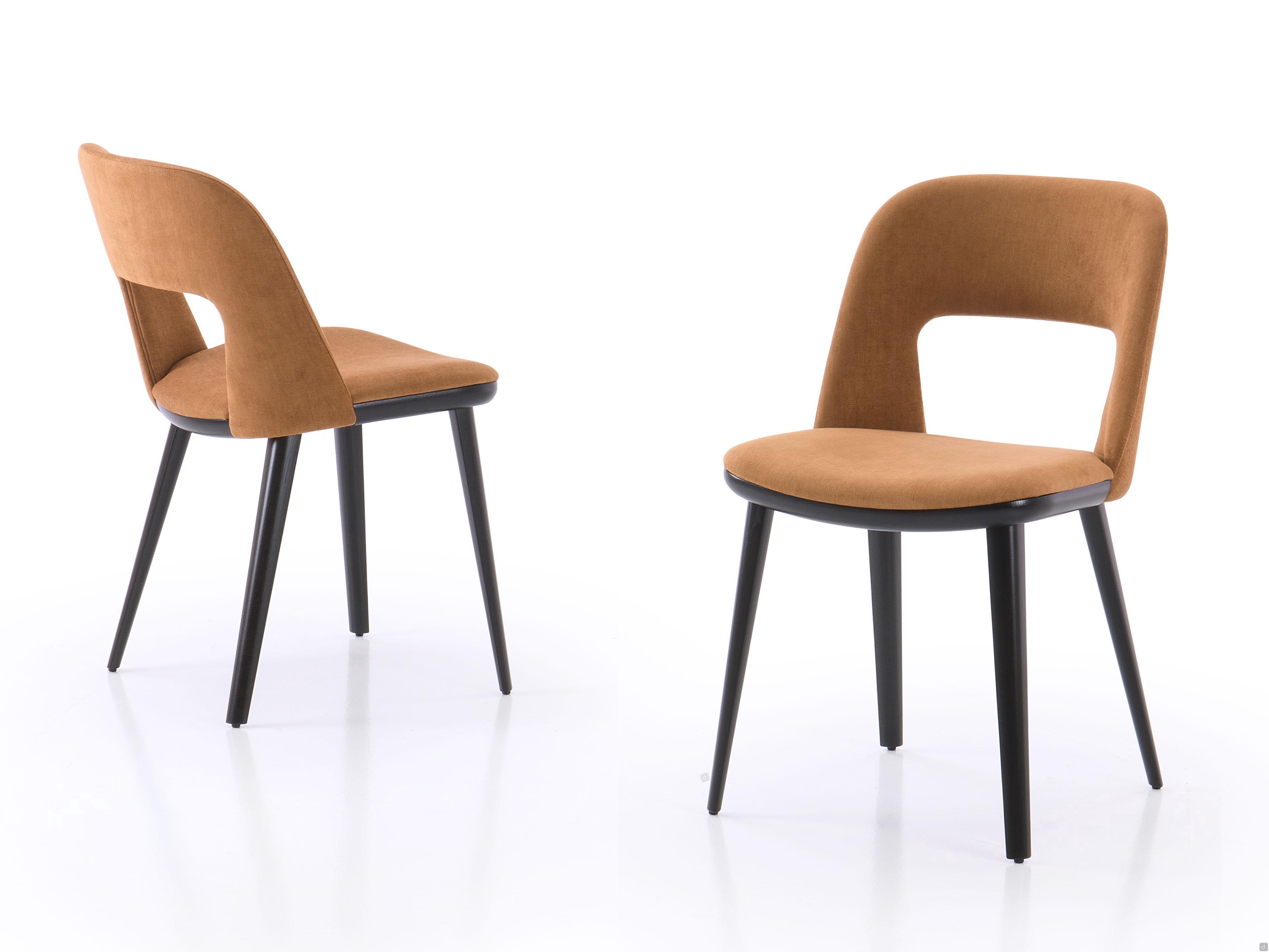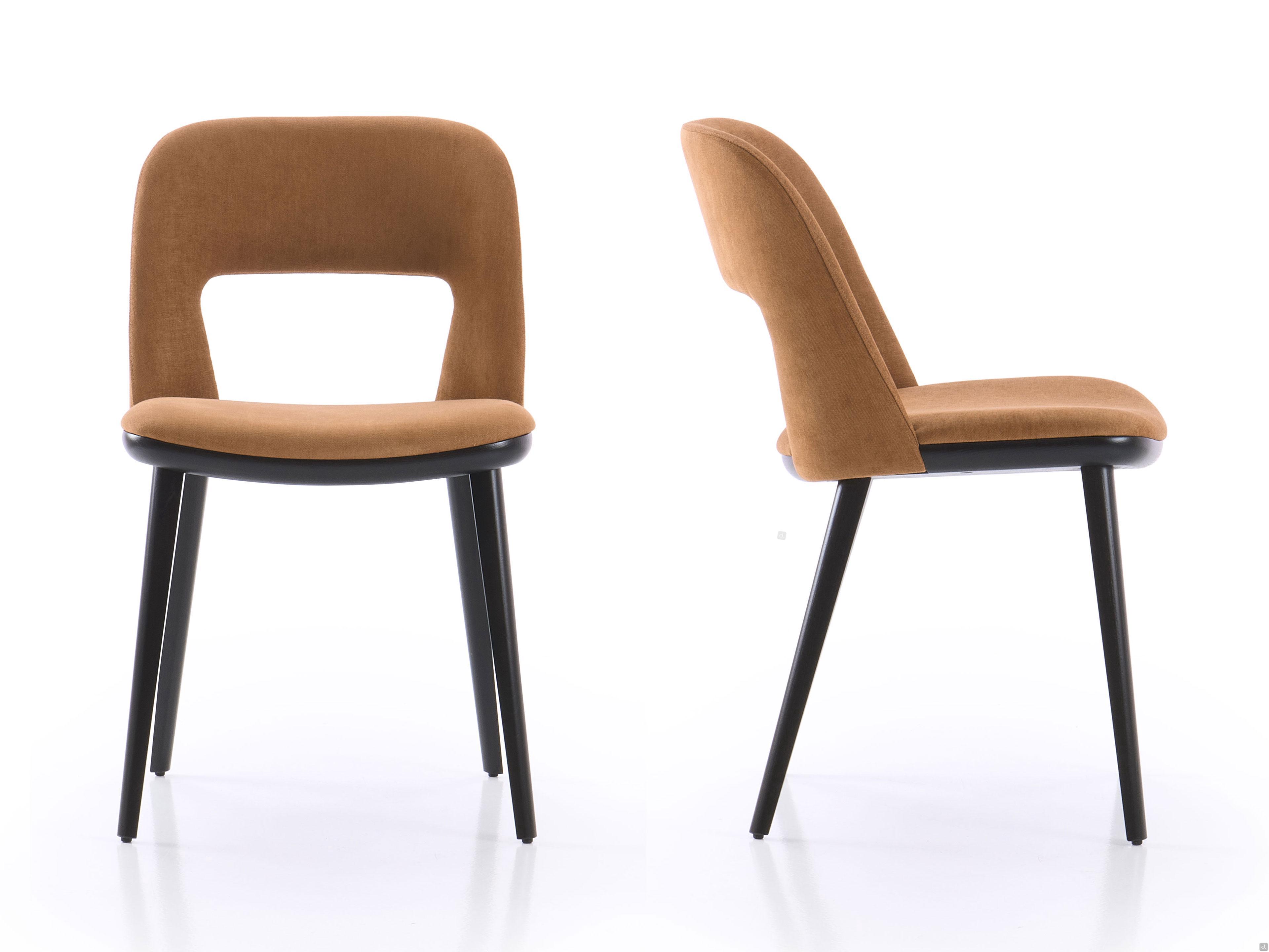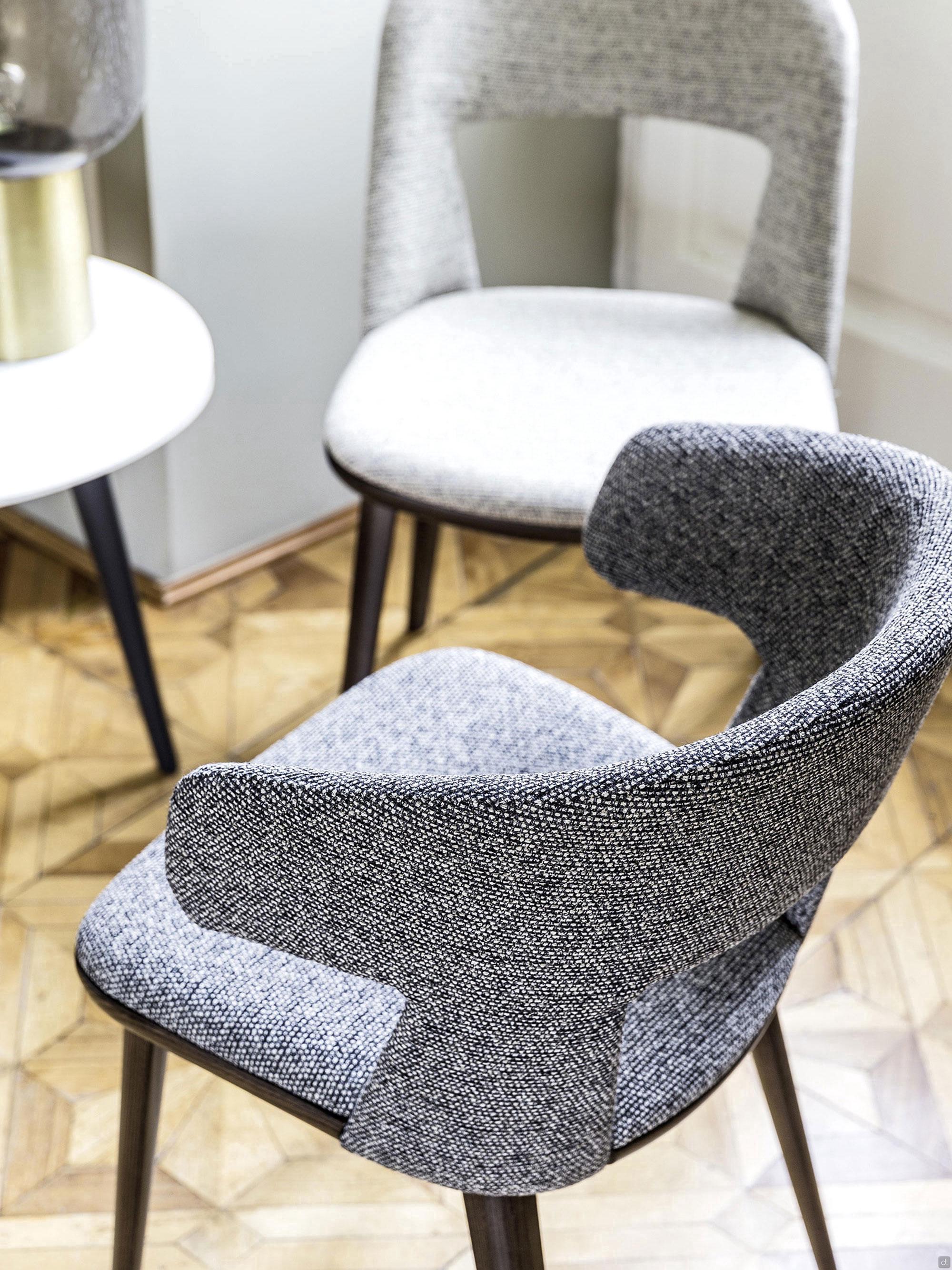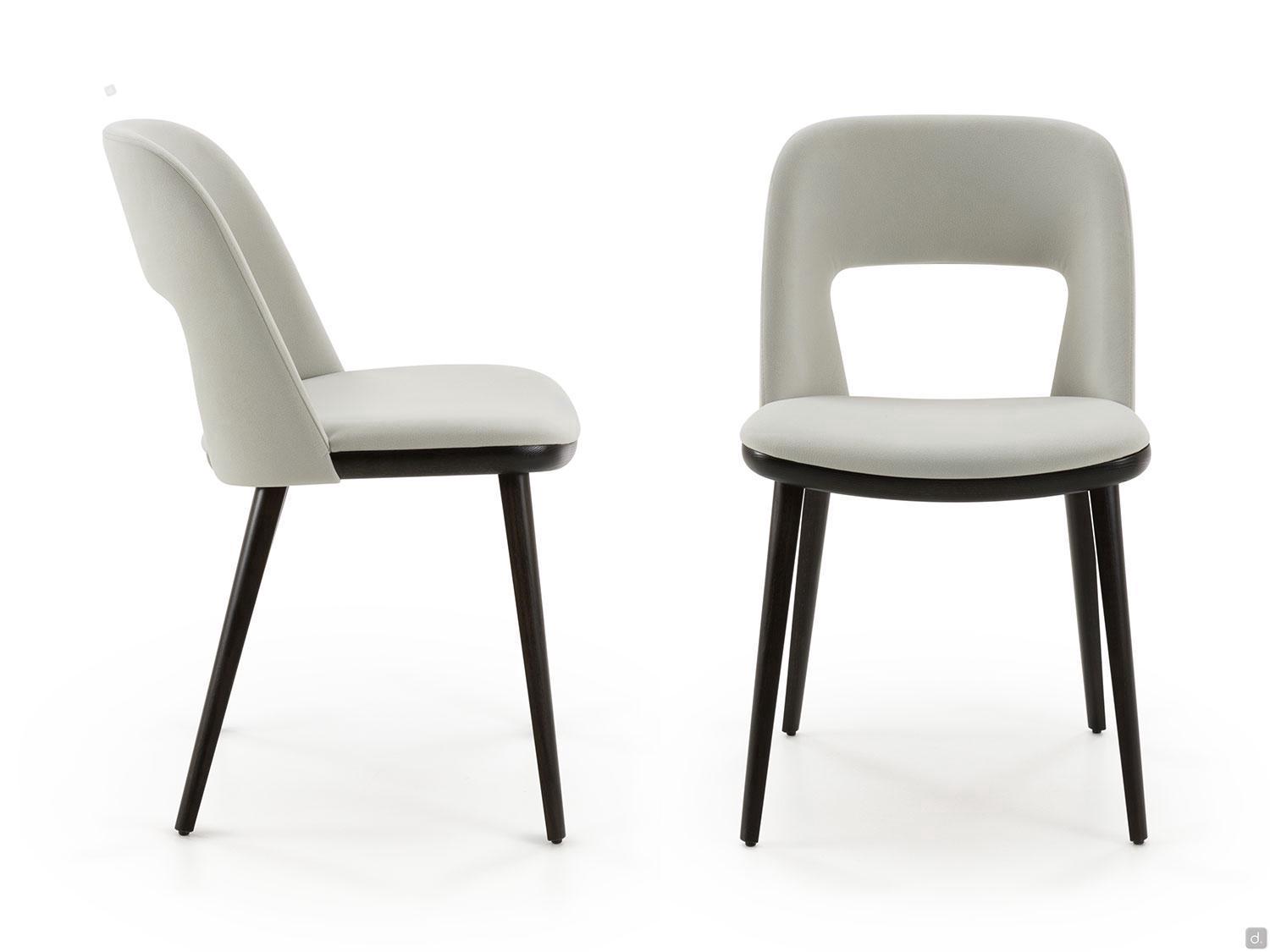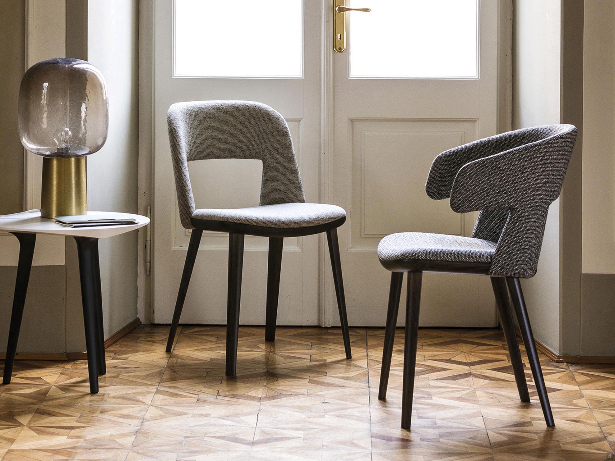 Vence est une chaise rembourrée avec pieds en bois massif, idéale pour une salle à manger élégante et contemporaine. Elle se distingue pour sa silhouette douce et grâce au dossier rembourré et profilé elle résulte particulièrement confortable. La version petit fauteuil avec accoudoirs est dotée de deux ailes latérales, parfaite pour votre bureau. Les pieds inclinés et fuselés en bois de frêne massif soutiennent l'assise composée par un profil en bois et une partie rembourrée. Le revêtement de l'assise et du dossier est disponible en tissu, simili-cuir, velours ou cuir naturel dans nombreuses colorations.