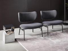 Chaise de séjour à dossier bas Noor de Bonaldo rembourrée et recouverte de tissu, de simili cuir vintage et de cuir. Structure minimal en métal.