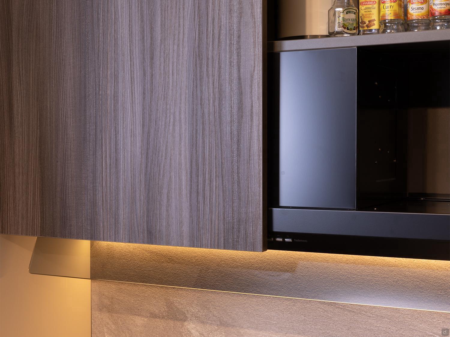 - éléments bas et hauts : placage orme foncé