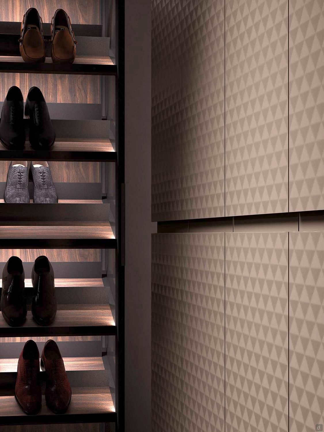 - Shanghai (uniquement dans la finition laquée) : gravures en "V" diagonales L.0,2 cm ép.0,2. cm.