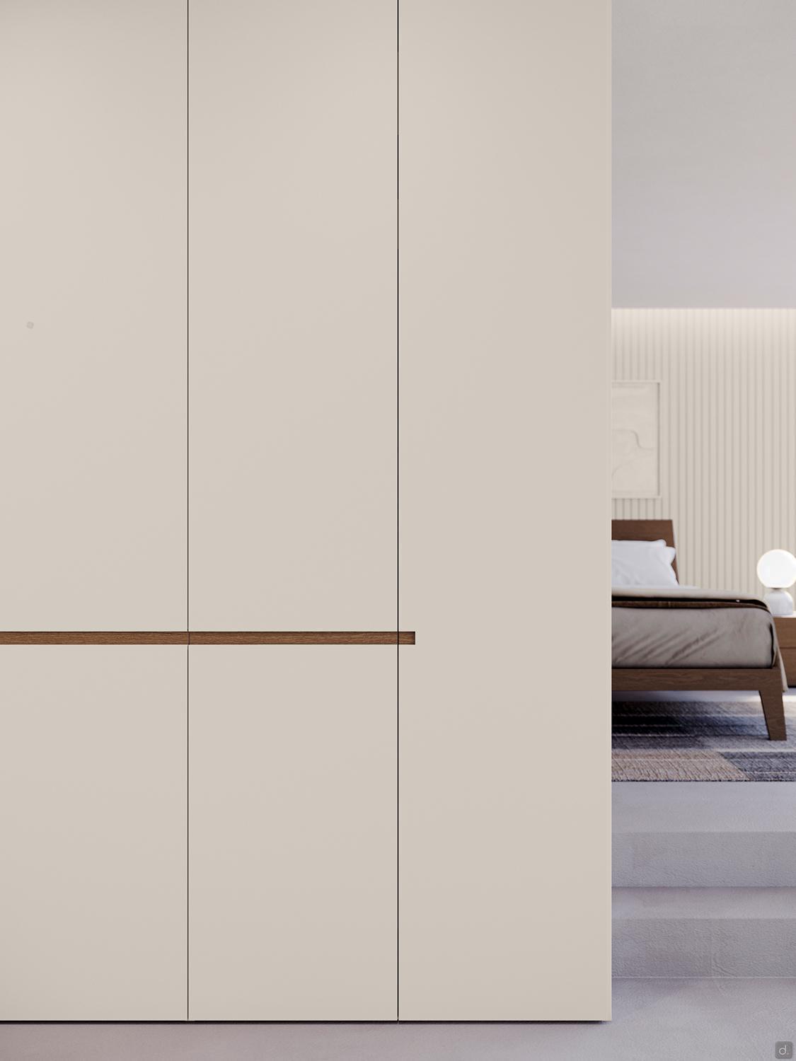 Portes Battantes : panneaux alvéolaires de 2,4 cm d'épaisseur avec cadre en sapin massif, laquées ou en bois. Dans les modules à deux portes battantes, une seule gorge est normalement réalisée sur la porte droite. La porte gauche est équipée d'une gaine anti-poussière en PVC.