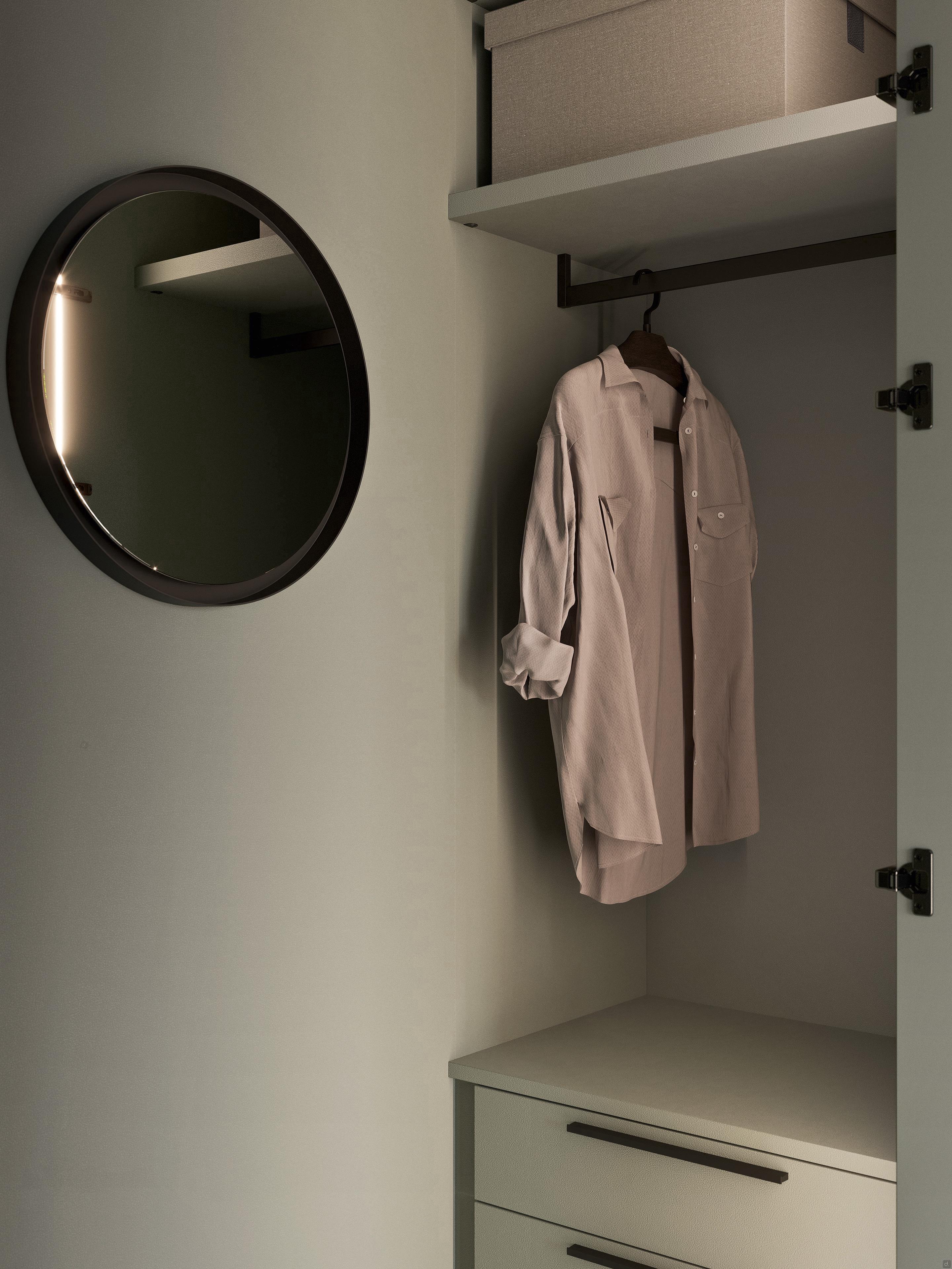 specchio: schienale interno a specchio, disponibile esclusivamente per il modello "con vani giorno esterni + ripiano interno"