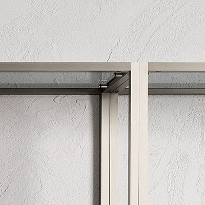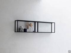 DimensionsUne étagère avec porte-serviette : - cm 60 p.12 h.12 - cm 85 p.12 h.12 Deux étagères : - cm 60 p.20,8 h.37,5 - cm 70 p.20,8 h.37,5 - cm 85 p.15 h.18,75 Mateériaux et Finitions Chassis : - aluminium noir / brossé Étagères : - verre transparent fumé