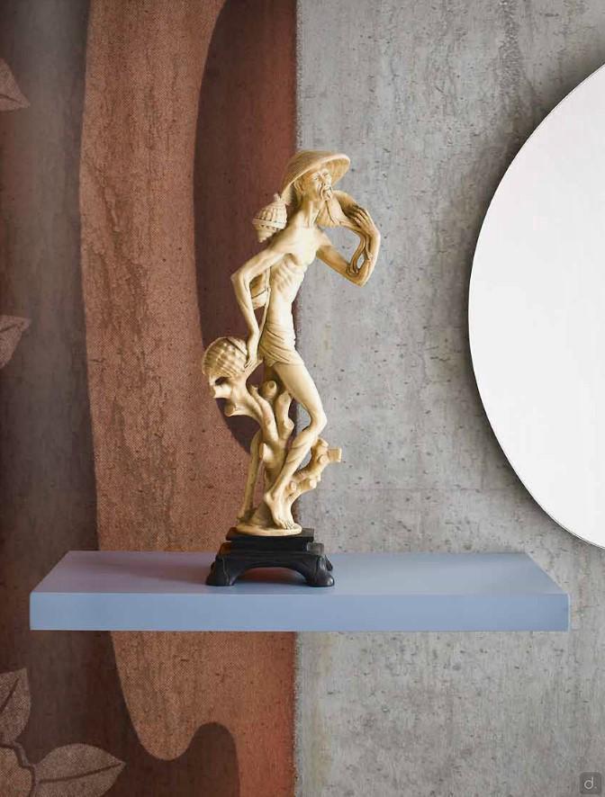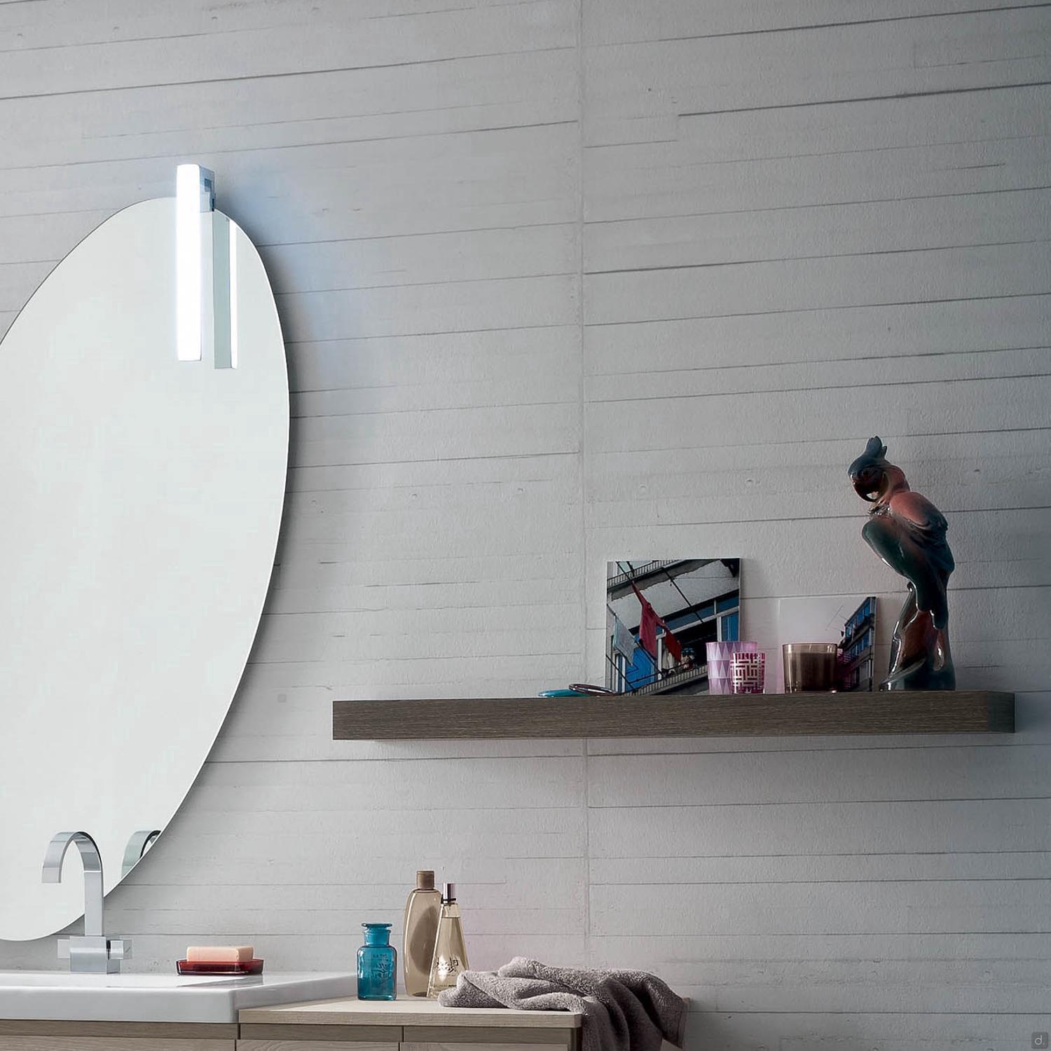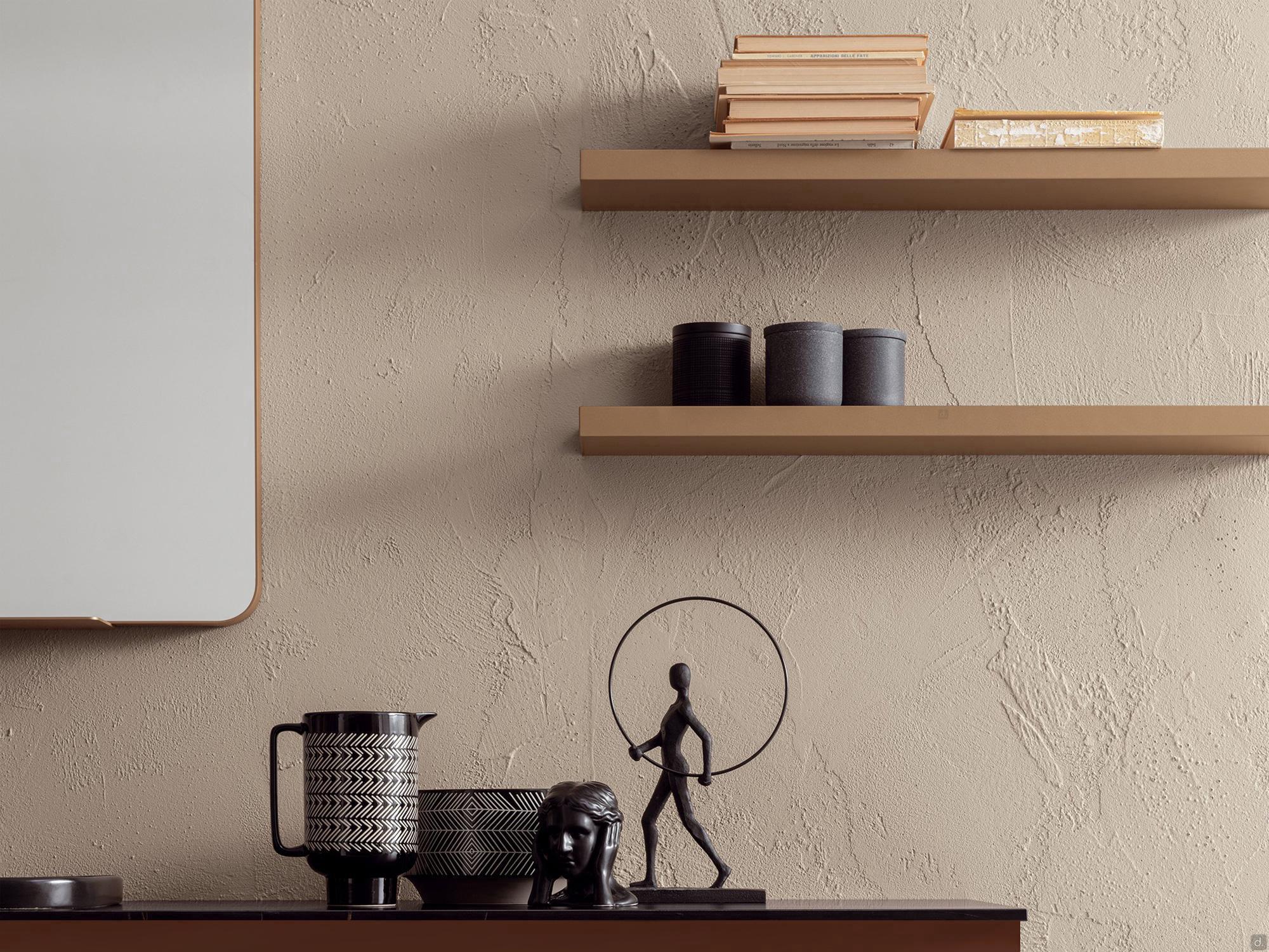 Etagère pour salle de bains avec largeur personnalisée de la collection Oasis; disponibile en deux épaisseurs et trois profondeurs et réalisable en mélaminé, laqué mat ou brillant. La tablette de 1,8 cm d'épaisseur est fixée au mur à l'aide de deux supports apparents dont la finition peut être personnalisée, tandis que la version de 3,5 cm d'épaisseur comprend deux supports escamotables qui contribuent à rendre la fixation de la tablette plus propre et plus ordonnée visuellement. Le choix des profondeurs peut varier en fonction de la composition : la profondeur 20,8 cm est idéale lorsque vous souhaitez associer l'étagère à un meuble suspendu de même profondeur, tandis que la profondeur 37,5 cm, disponible exclusivement sur l'épaisseur la plus importante, s'associe à la profondeur des armoires hautes de buanderie de la même collection.
