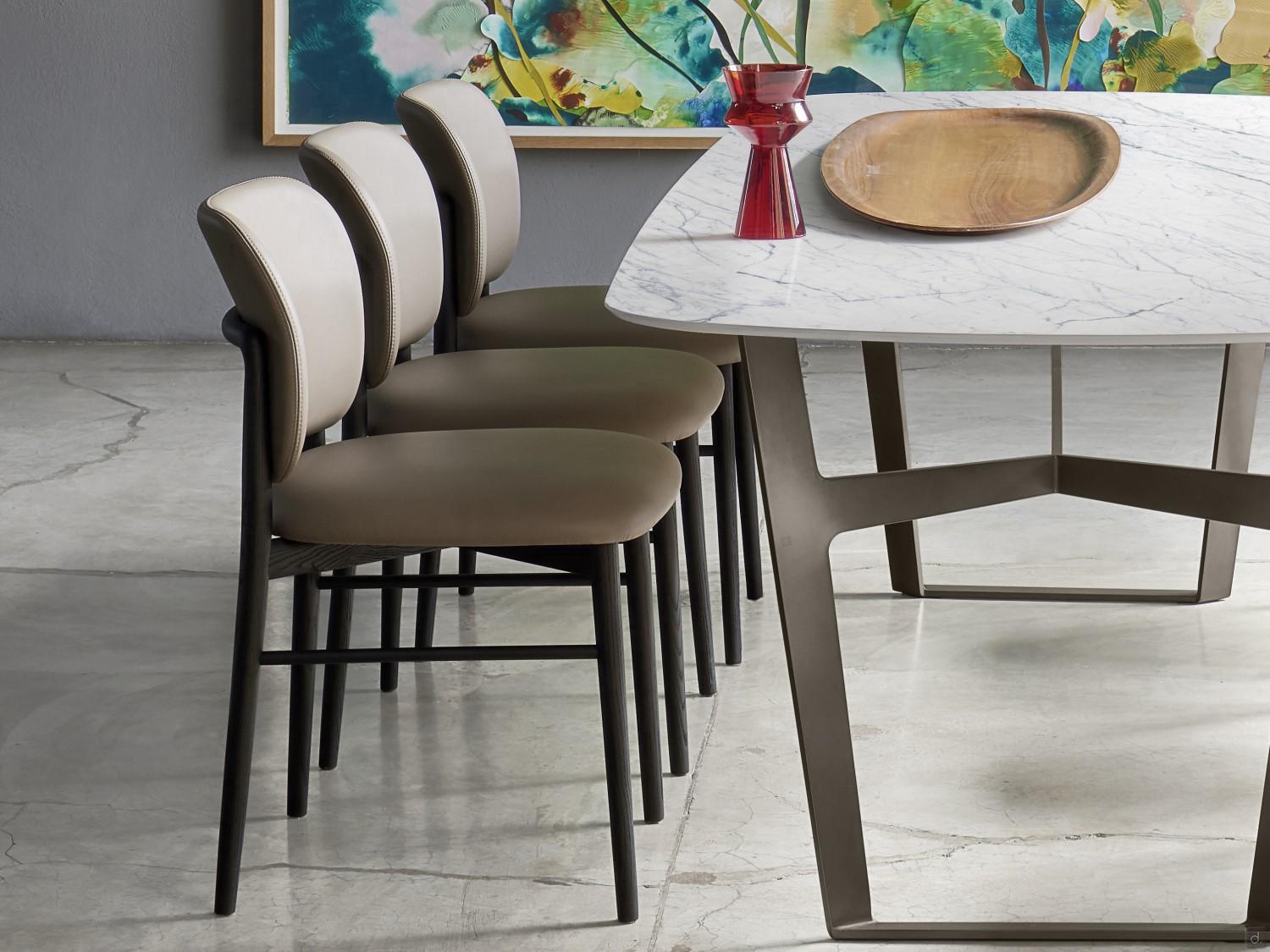 Le fauteuil de salon rembourré Janine présente une structure en bois avec une assise et un dossier entièrement rembourrés disponibles dans des nombreuses finitions. Tissu, similicuir, cuir et cuir vintage. Le siège est large et confortable, tandis que le dossier est légèrement incurvé pour accueillir et soutenir encore mieux la zone lombaire et le milieu du dos.Idéal dans les salons et les grands espaces de vie et en combinaison avec des tables même de grande taille. Facile à combiner avec des finitions telles que le bois céramique ou le marbre, Janine est une chaise polyvalente qui suit le style classique revisité dans une tonalité moderne. Élancé et doté d'un haut cadre en bois, elle est parfaite dans les salons contemporains.