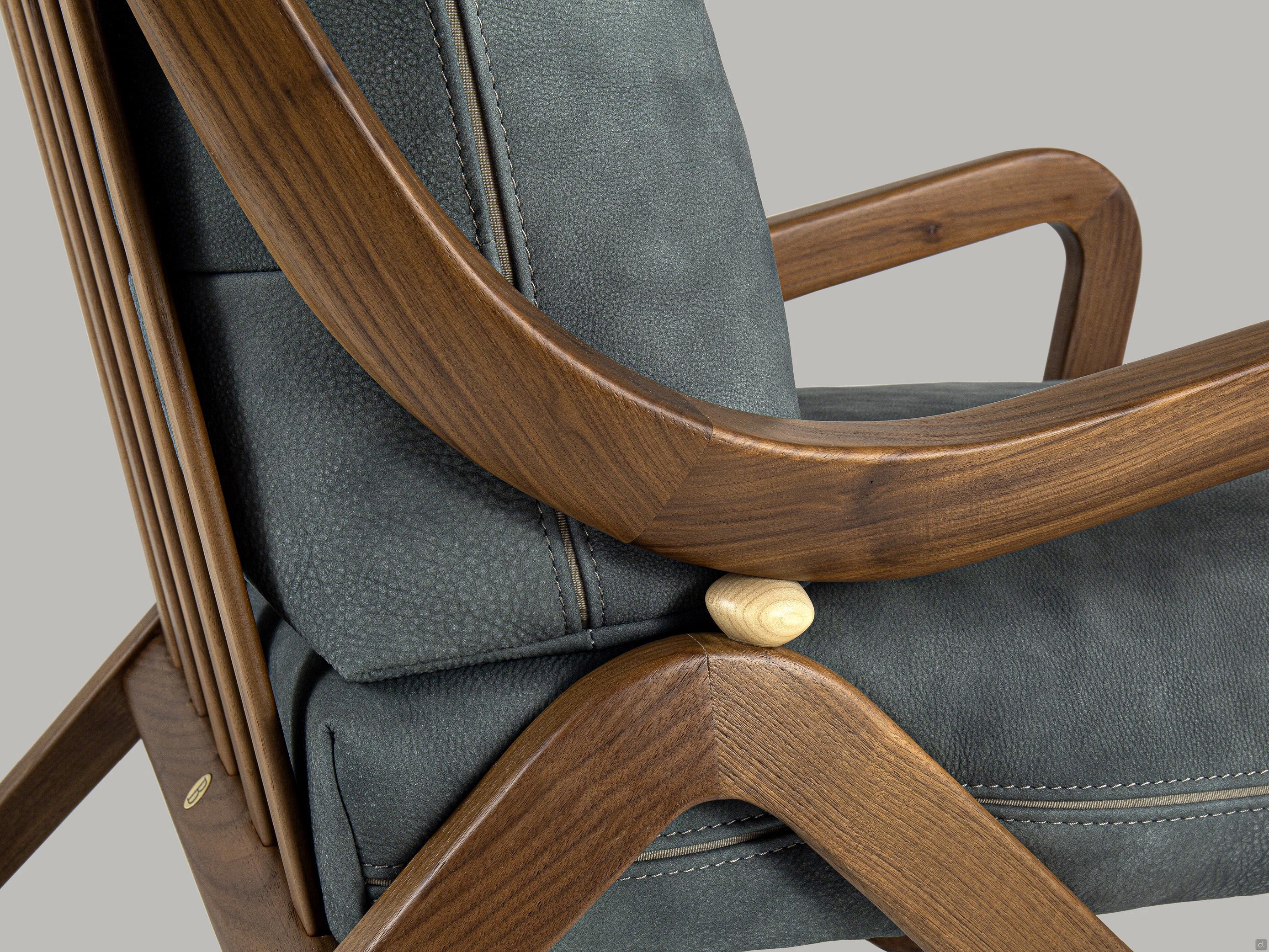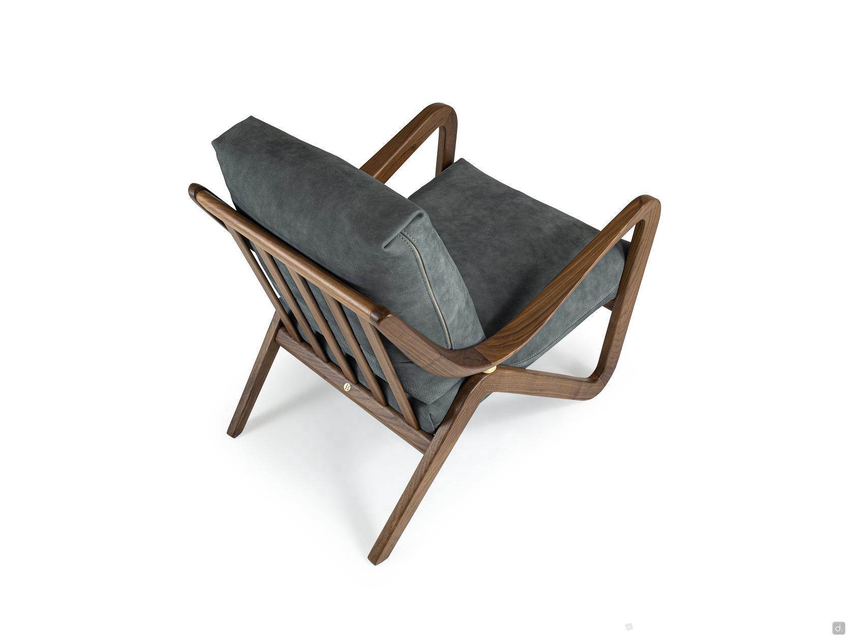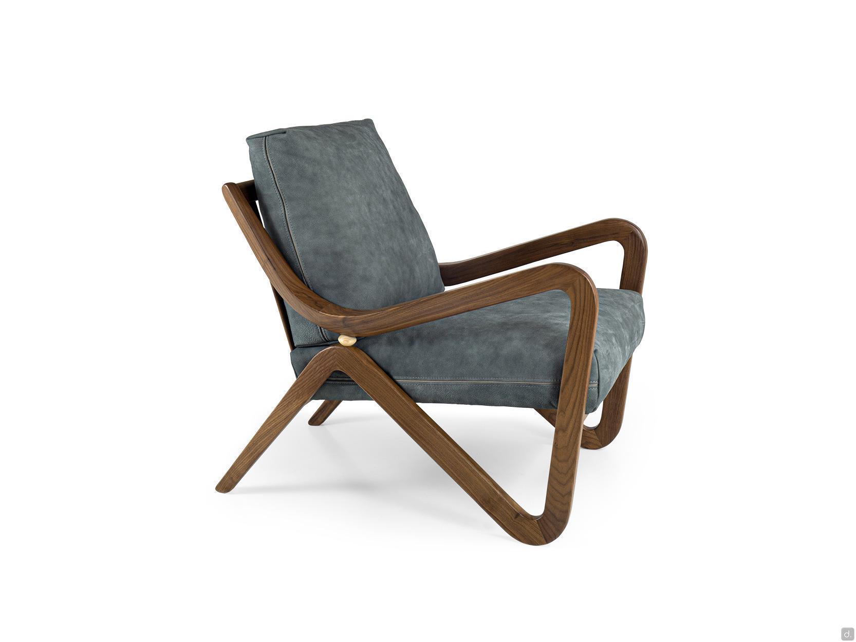 Jody est un fauteuil rembourré avec accoudoirs en bois parfait pour un salon au design vintage. Le fauteuil Jody présente une forte connotation sculpturale et artisanale, caractérisé par sa structure en bois massif réalisée la main et incurvée, créant ainsi les pieds et les accoudoirs dans une même ligne sinueuse.La solidité et les formes du bois contiennent les deux coussins moelleux de l'assise et du dossier, amoviblea et déhoussables, revêtus de cuir, tissu ou velours.Un fauteuil qui exprime au plus haut point les valeurs, soit l'élégance, le design recherché et le confort.